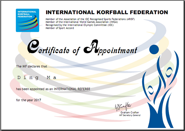 2017年2月11日,国际荷球联合会发来委任书,委任我校马丁老师为2017年国际级裁判员。2015、2016年,马丁老师作为荷球国际裁判员分别执法过亚洲荷球锦标赛、亚洲U23荷球锦标赛、亚洲U19荷球锦标赛。