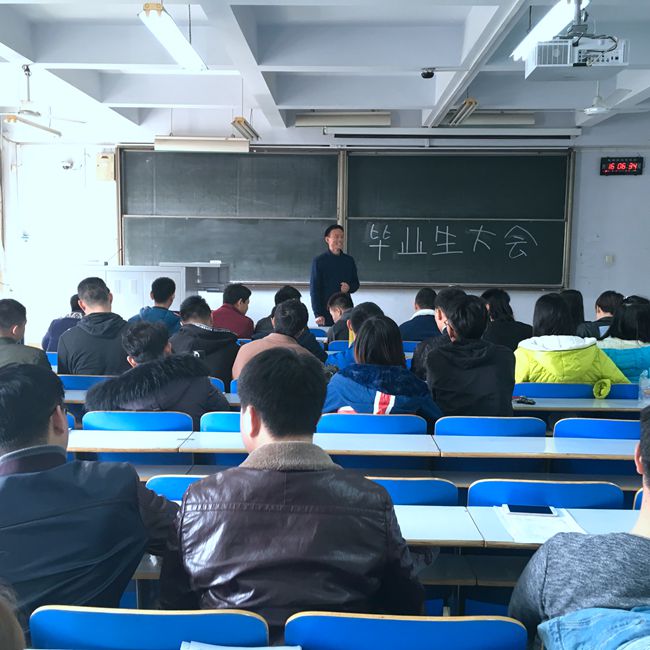 会上,石老师通报了2017届毕业生截至目前的就业、创业和考研情况,希望全体毕业生调整心态,树立正确的择业观,处理好就业、择业和创业的关系,争取早日顺利就业。会上,石老师介绍了毕业前毕业设计以及离校等各项工作的时间安排,要求大家认真做好毕业设计,合理安排时间参加学校各项教学和离校工作,确保顺利毕业。接着,石老师询问了考研同学的初试情况,要求考研初试成绩理想的同学积极准备复试。最后,石老师向毕业生讲解了签订就业协议、进行人事代理、合理安排档案去向等问题,详细介绍了就业、毕业、创业相关流程,要求同学们积极准备求职资料,参加学校即将举办的毕业生双选会。