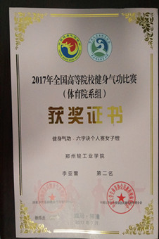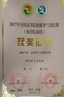 7月29日至31日,由国家体育总局健身气功管理中心和四川省体育局主办,梓潼县人民政府承办的2017年全国高等院校(体育院系组)健身气功比赛在绵阳市梓潼县举行。比赛为期3天,共有41所高校代表队200余人报名参赛。我校选派了ng28娱乐官网 社会体育指导与管理专业4名同学参赛。在我校ng28娱乐官网 杨莹莹老师的带领下取得了优异的成绩。李亚蕾荣获六字诀个人赛全国第2名、熊江荣获八段锦个人赛全国第6名、杨顺荣获易筋经竞赛功法个人赛全国第8名的好成绩,苏颖同学荣获体育道德风尚奖。