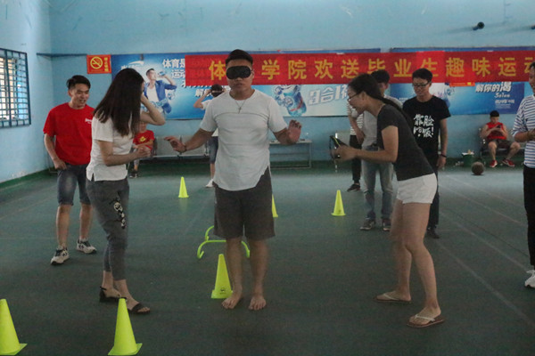 本次活动共由四个年级组成四支代表队参加。趣味运动会由“螃蟹赛跑”、“仙人指路”、“我来比划你来猜”三个趣味游戏组成。在“螃蟹赛跑”游戏环节中,同学们两两配合,背对背夹着篮球稳步前进,有的配合比较默契,没有出现掉球的失误,有的队伍则手忙脚乱,输掉比赛。“仙人指路”游戏则考验了队伍之间的协调配合能力,一人戴眼罩,另外的人指挥他穿过障碍物。“我来比划你来猜”游戏则把此次比赛推向高潮,各个队伍如同八仙过海,各显神通,充分发挥了自己的表演才能。最终经过激烈的角逐,毕业生代表队赢得了最后的冠军!