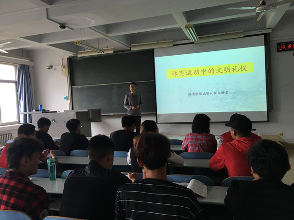在讲堂中,石老师分别针对网球、篮球、足球、羽毛球、乒乓球等运动项目中的运动礼仪进行了讲解,并且详细讲解了教练员、运动员、观众等不同人群在赛场内外的礼仪规范。作为有着悠久历史的文明古国,文明礼仪是我们中华民族的优良传统。伴随科技的进步,迈入新时代,需要建立一种全新的社会风气,用文明礼仪来树立良好的社会形象。石老师最后谈到,作为当代体育专业大学生,更应该身体力行,知行合一,以知促行,以行求知,努力成为新时代中华民族优秀传统文化的继承者和弘扬者,成为大学生文明礼仪规范养成的引领者和践行者。