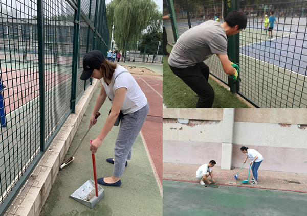 上午9:00,志愿者服务队全体成员来到体育场开始志愿行动,大家不畏天气炎热,迅速投入工作:修理围网、捡拾废弃物、打扫卫生死角……,忙得不亦乐乎。在大家的共同努力之下,学校体育场的环境更加地整洁、干净。志愿者们为创建美丽、文明、和谐的轻大校园积极贡献力量。