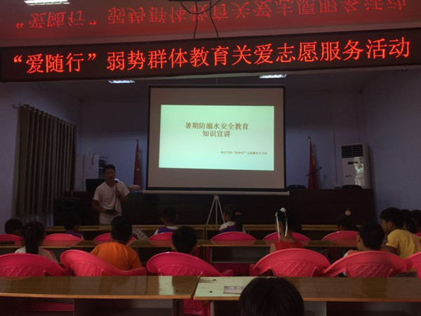 活动中,为了让孩子们更加深刻地认识暑期防溺水的重要性,队员们精心准备了暑期防溺水安全教育宣传页,现在发放给孩子们,并进行现场讲解,让孩子们清晰了解暑期防溺水事项。同时,队员们现场向孩子们示范并讲解了救生圈、救生衣的使用方法,并详细讲解了心脏复苏的操作方法,带领小朋友们进行了实操教学,得到了家长和孩子们的欢迎和认可。在室内,队员们通过PPT向孩子们集中讲解了暑期防溺水相关知识。队员们在讲解过程中通过采用有奖问答、分组讨论、小游戏等形式,将防溺水知识寓教于乐,让孩子们在欢快的笑声中学习了知识,增强了防溺水安全意识。