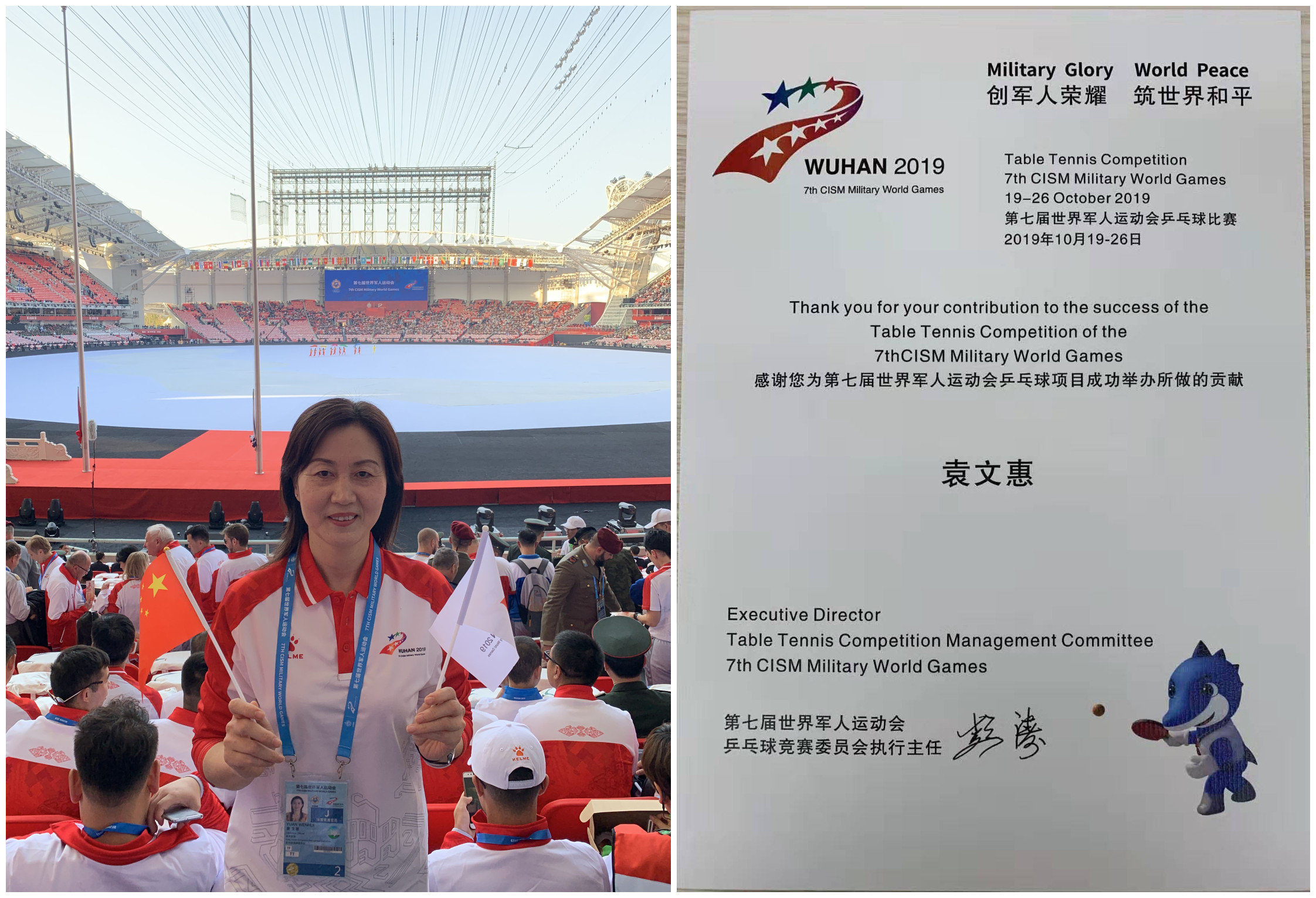 10月18日至27日,第七届世界军人运动会在中国武汉举行,共有来自109个国家的近万名现役军人同台竞技,是世界军人运动会历史上规模最大、参赛人数最多、影响力最广的一届运动会。我校ng28娱乐官网 国际级裁判袁文惠教授被国家体育总局选派,经军运会组委会审核、批准担任本次比赛乒乓球项目的技术官员。