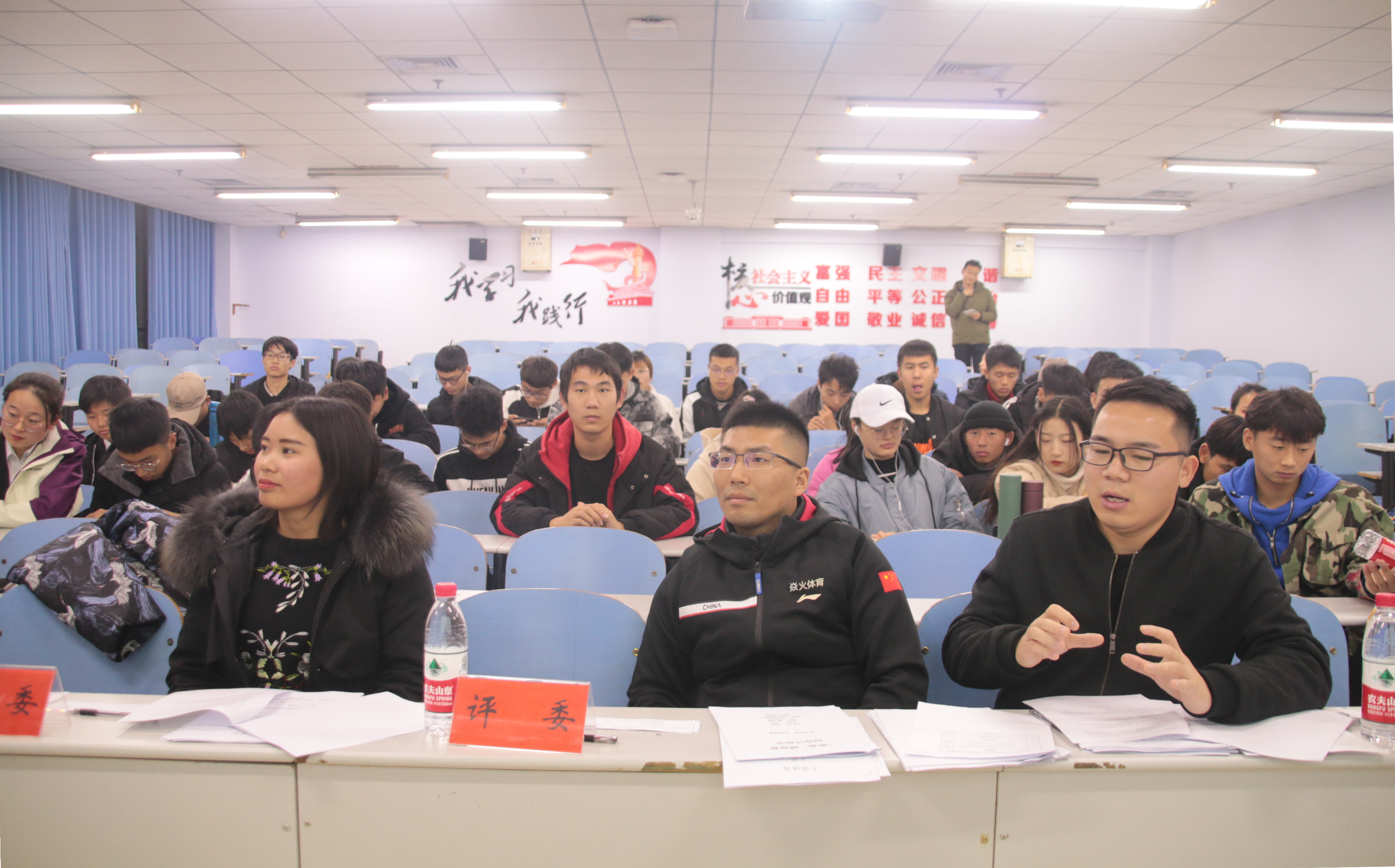 为培养和提升学生的创新创业意识和能力,12月2日下午,ng28娱乐官网 在教三楼105室成功举办了2019年创新创业大赛。本次比赛特邀请到ng28娱乐官网 2007级优秀校友、河南威动体育俱乐部联合创始人、总经理申贝贝,ng28娱乐官网 2010级校友、河南焱火体育产业有限公司创始人、董事长单长春和ng28娱乐官网 2013级校友、河南伯乐体育产业有限公司创始人、董事长程帅虎担任评委。ng28娱乐官网 分团委书记石庆福老师和ng28娱乐官网 全体同学到场观看了比赛。