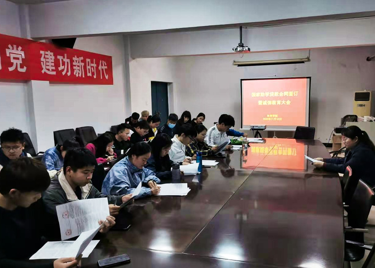 为加强贷款学生诚信教育,完善助学贷款工作流程。11月10日晚,ng28娱乐官网 在三楼会议室举行本年度国家助学贷款合同签订仪式暨诚信教育大会。ng28娱乐官网 资助工作负责人陈洁老师、院学生会资助部以及全体申请助学贷款同学参加了此次会议。