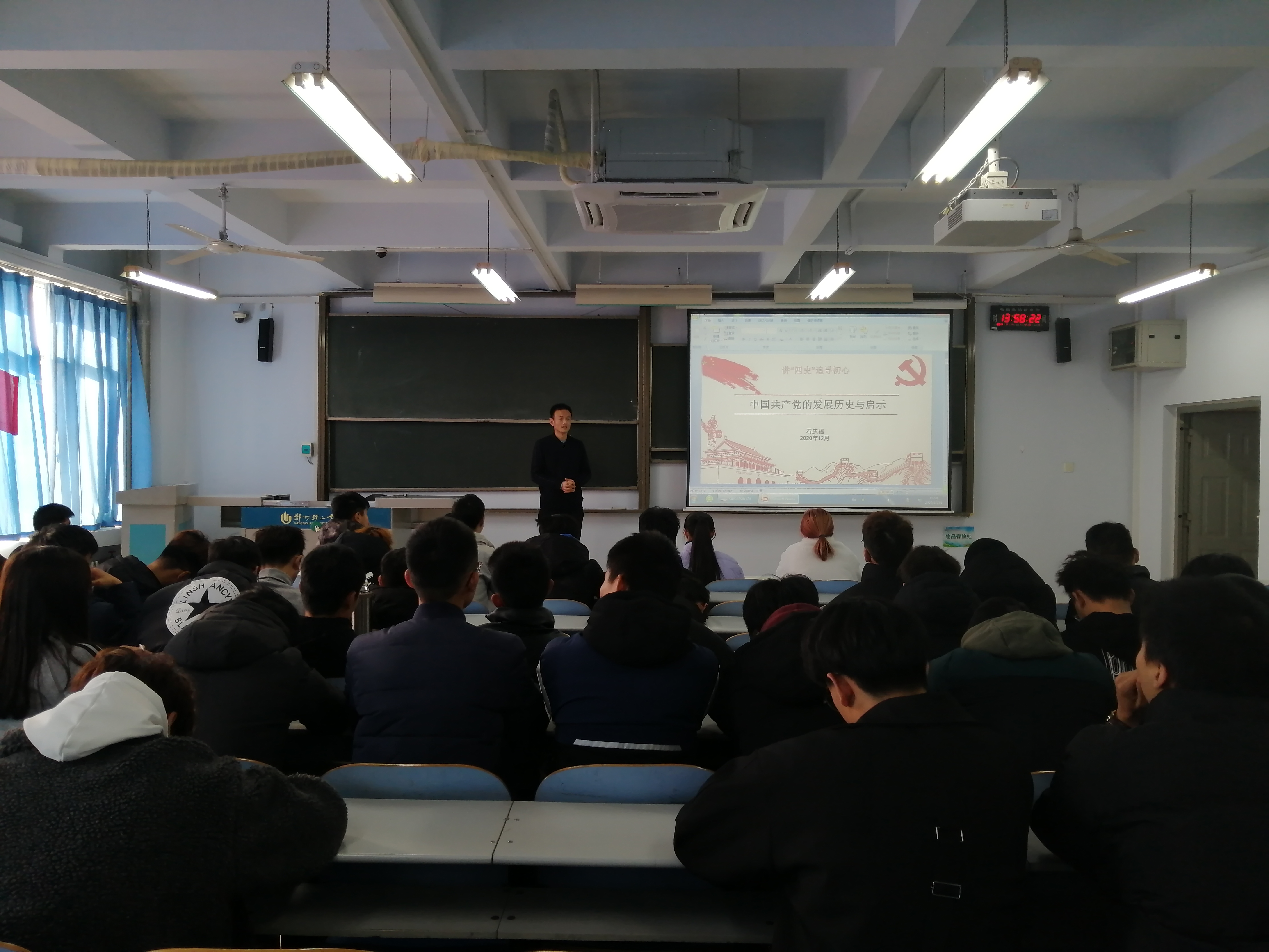 为深入落实习近平总书记关于学习“四史”的重要指示精神,引导广大青年学子从“四史”中汲取力量,12月14日,ng28娱乐官网 在教三楼801室开展了“讲‘四史’追寻初心”主题团课活动。本次团课由ng28娱乐官网 团委书记石庆福老师主讲,ng28娱乐官网 团学骨干和2020级全体团员参加了此次活动。