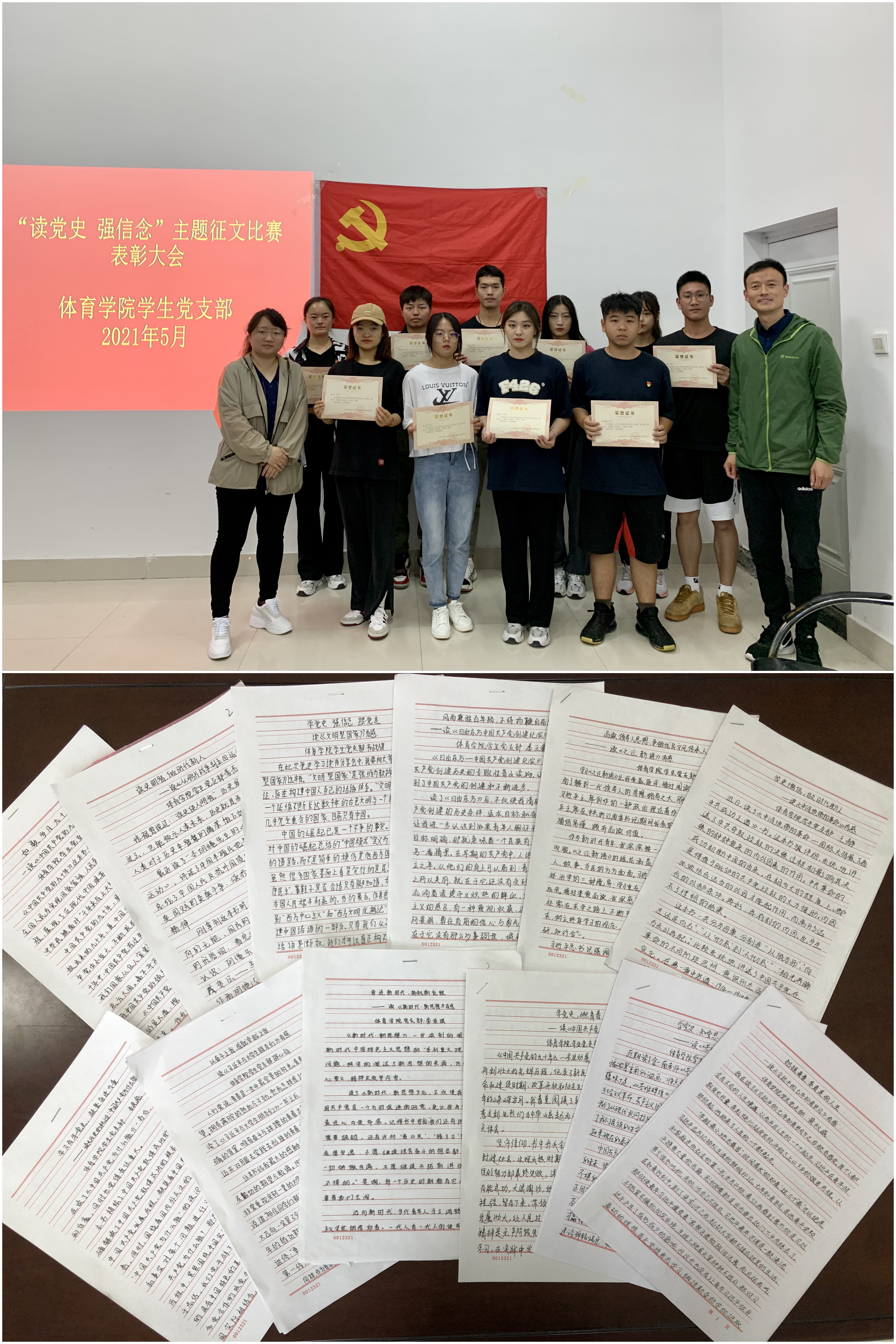 比赛共收到ng28娱乐官网 全体学生党员和入党积极分子40余份作品。这些征文中,有的结合选读的红色书籍忆往昔峥嵘岁月,抒发了读后感想;有的结合自己的工作、学习和生活经历,畅谈自身收获;有的通过学习党的“红色体育精神”、“中华体育精神”,从中汲取前行的力量;有的结合自己的学习和成长之路,抒发了对祖国、党和人民的感恩和热爱;有的深情讲述了优秀党员的感人故事,激励勇于奉献、敢于担当。纸短情长,一份份征文都饱含着同学们对党的热爱和深情。经过评审,共评选出一等奖3名,二等奖4名,三等奖5名。