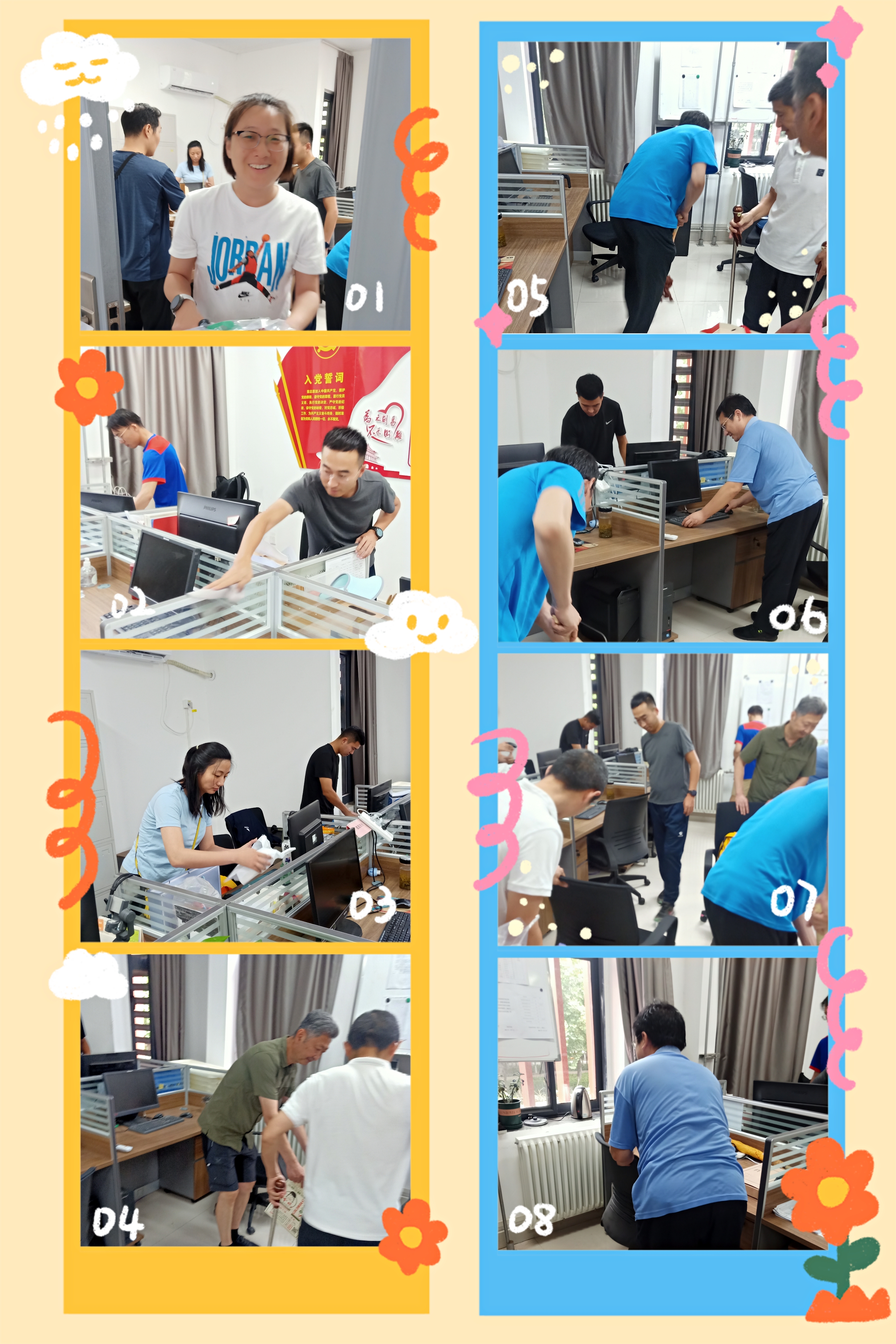 活动中,支部书记杨莹莹同志带头,全体党员及教师分工协作、相互配合、热情高涨、干劲十足,把学校新体育馆办公区域进行了清洁打扫。志愿者们充分发扬了互助、奉献的志愿者精神,也充分展示了公共体育教研一部教工党支部团结进步、作风优良的道德风貌。