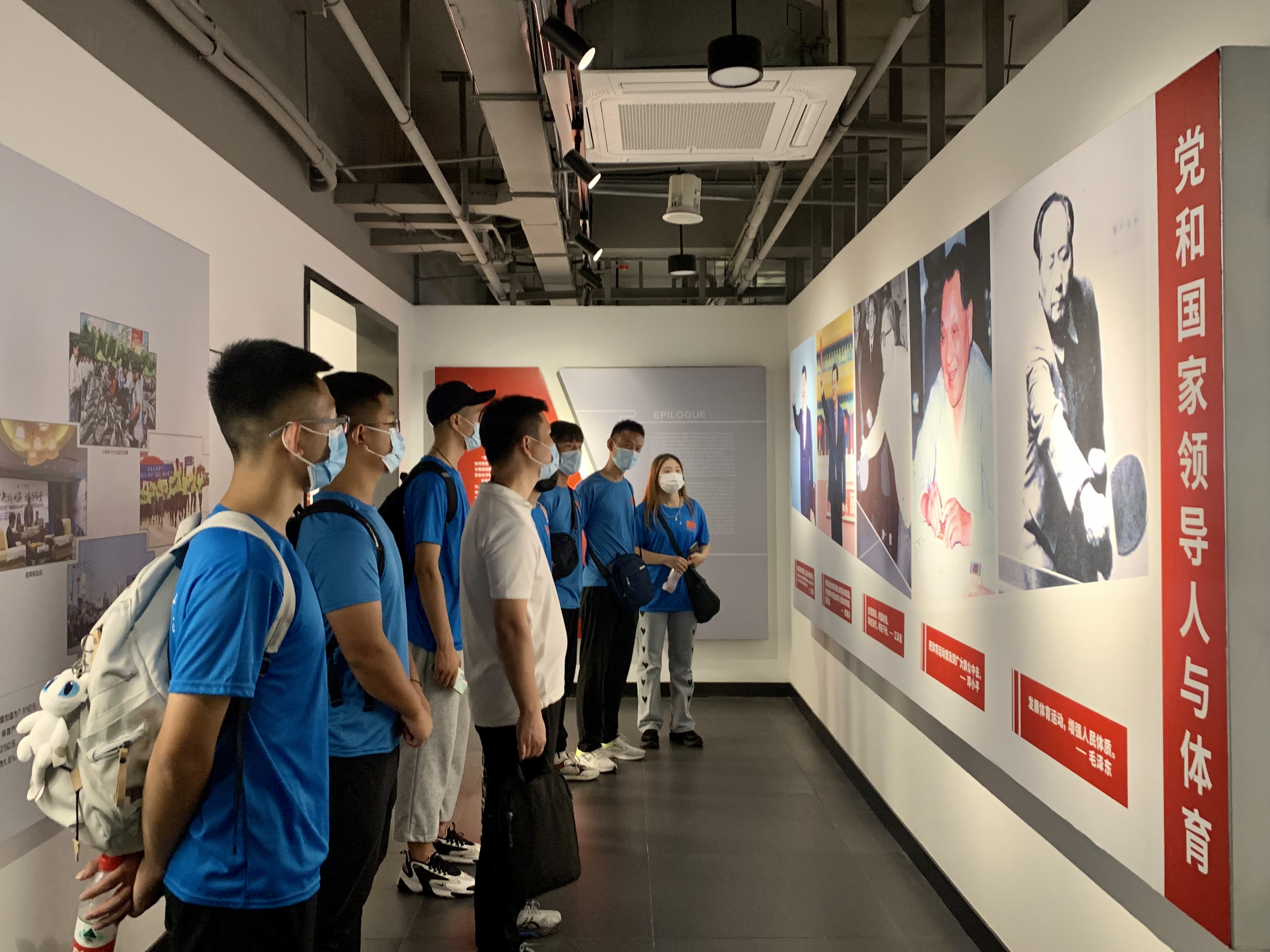 党史宣讲结束后,队员们来到了洛阳体育博物馆。博物馆设“忆古溯源”、“现代览胜”、“旭日东升”三大功能版块。“忆古溯源”版块,以文物、图文展板、电子屏、艺术展墙、多媒体等形式,展现中华体育文化的萌芽、发展与传承。“现代揽胜”版块展示了新中国成立以来,现代体育发展的铿锵步伐。以黄河漂流为典型,凸显运动健儿不畏艰险、坚定信念、激流勇进的体育精神。“旭日东升”版块,以人工智能体育与体育体感互动体验为主,让青少年在趣味互动中学习体育知识,获得“沉浸式”体验。在“忆古溯源”版块,队员们沿着历史的轨迹,沉浸在从石器时代至清代的漫长体育发展历史长河中,深入学习了百戏、围棋、养生体育、宫廷体育、市民游艺等不同时代的特色体育形式,深切感受到了中华传统体育文化的魅力。在“现代揽胜”版块,队员们看到了以声光影和文图形式,展示的新中国成立以来职工体育、农村体育、学校体育、少数民族体育、社区体育、残疾人体育等领域的发展和取得的成绩。当走进竞技体育与体育名人堂陈列室,队员们深深地被体育界历年来涌现出的功勋教练员、运动员的先进事迹所吸引,队员们深刻领略了运动健儿的风采。队员们纷纷表示,将以这些体育英雄人物为榜样,努力学习理论知识,刻苦训练专业技能,为建设“体育强国”贡献青春力量。