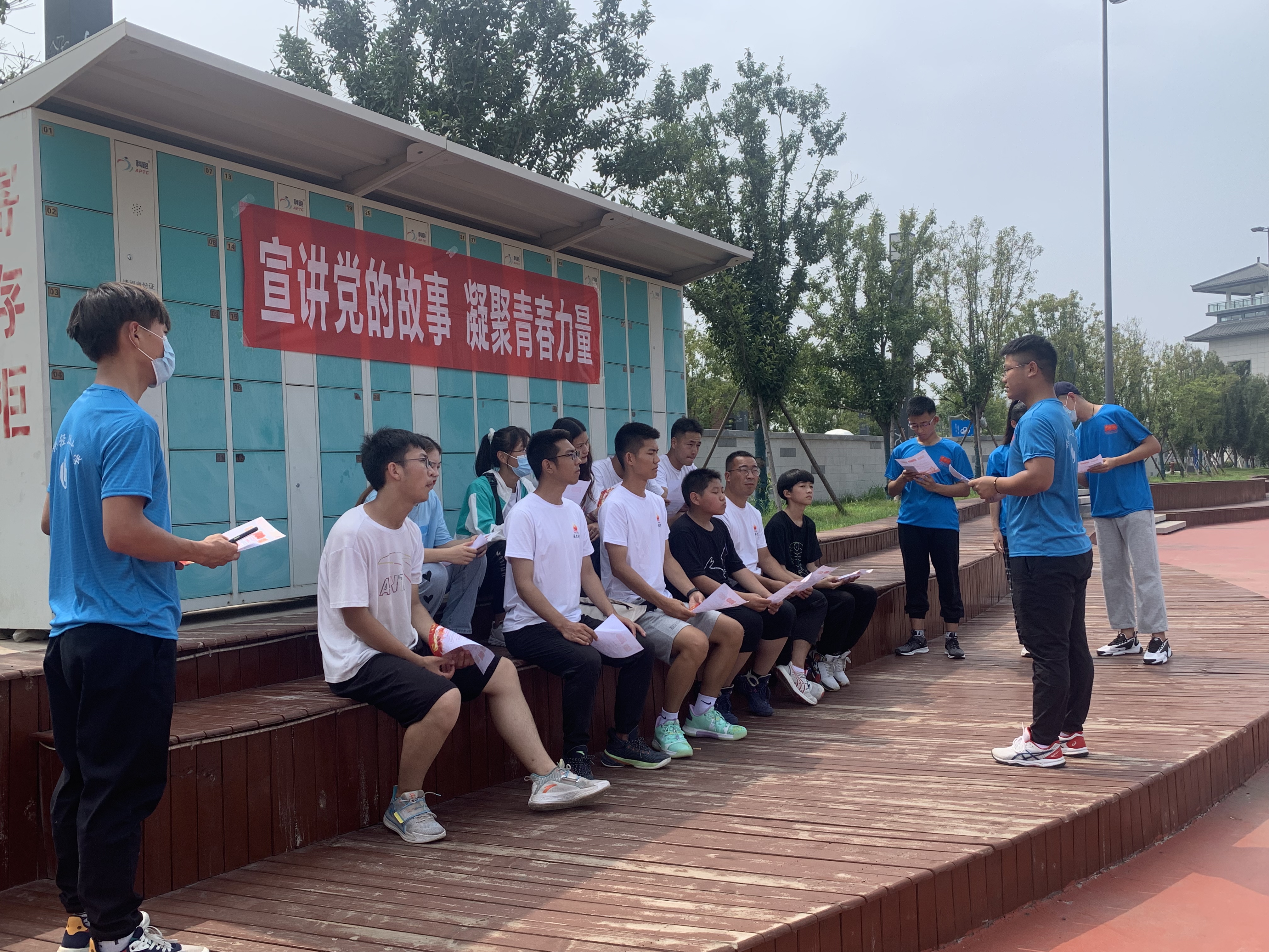 迎着朝阳,队员们首先来到了洛阳体育公园。在公园里,队员们向在这里参加体育活动的青少年们分发了《党史学习教育宣传页》,并向他们进行了党史宣讲。队员们精心准备了《人民的好公仆——焦裕禄》、《感悟回龙精神,勇担时代使命》、《毛泽东与体育的故事》、《红旗渠脚下的英雄儿女》、《铭记大别山精神》等五个宣讲主题,用生动形象的语言,结合英雄人物事迹和历史事件,向大家宣讲了焦裕禄精神、红旗渠精神、大别山精神、回龙精神和毛泽东的体育情怀。在一个个英雄人物的故事中,在一段段感人历史的回忆中,到场聆听的青少年们仿若经历了一场红色的洗礼,重温了一段段中国共产党和老一辈英雄人物的革命史、奋斗史。听完宣讲后,一名青少年激动的说:“聆听了大哥哥、大姐姐讲的英雄事迹和革命故事,让我真切地感受到我们党的伟大,明白了党和人民心连心的含义,让我倍感现在的美好生活来之不易。我一定要刻苦学习科学文化知识,努力成为社会主义事业的合格建设者和接班人”。党史故事的宣讲为青少年们播下了爱国爱党的种子,相信这颗红色的种子在他们的心中会不断生根发言,茁壮成长。