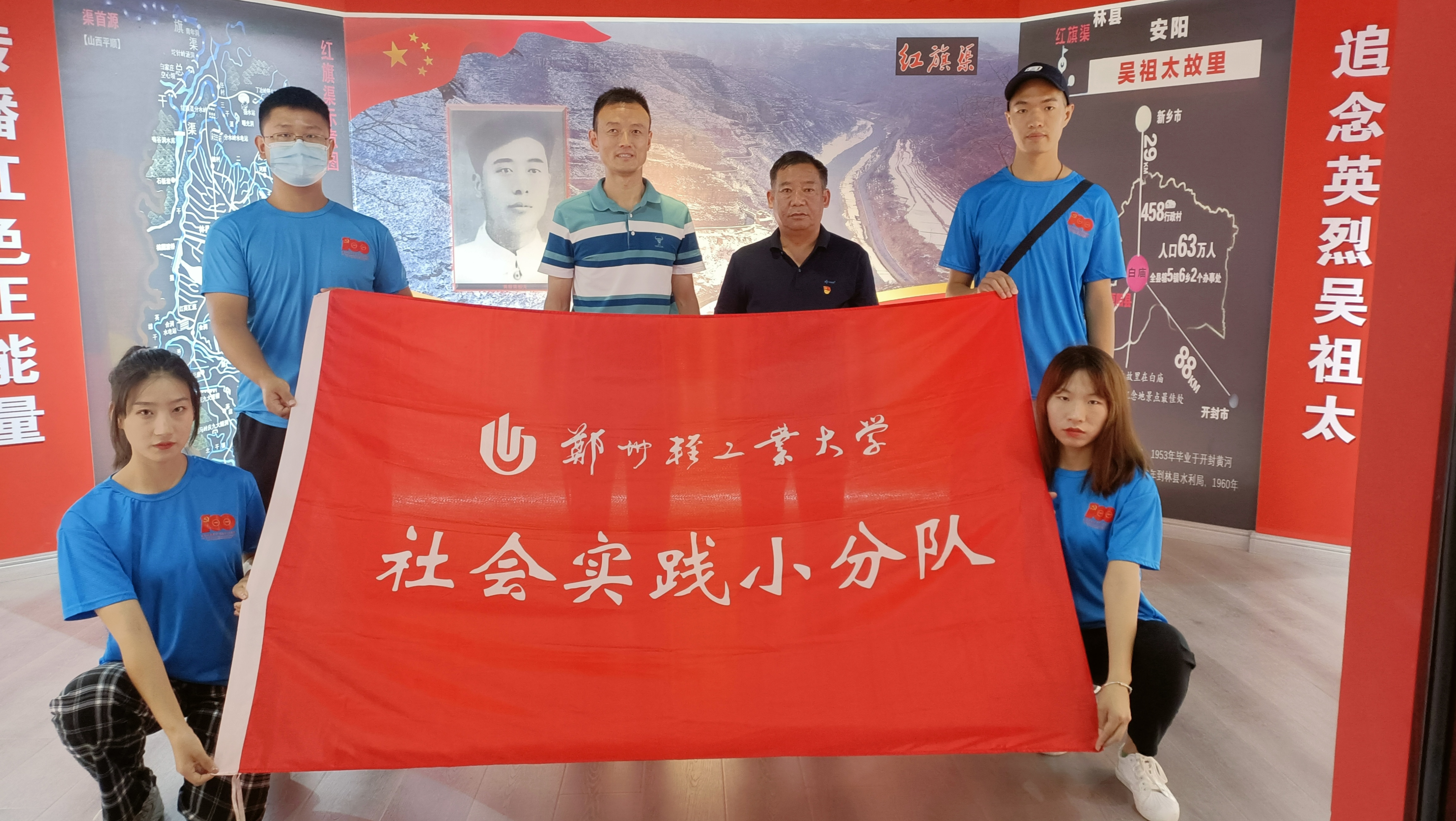 为了深入学习吴祖太先进事迹,弘扬伟大的红旗渠精神,引导广大青年学生向英雄学习,7月18日,ng28娱乐官网 “寻访英雄足迹”社会实践小分队在指导老师石庆福的带领下,来到河南省原阳县白庙村吴祖太故里学习吴祖太英雄事迹。原阳县原兴街道办事处党工委书记郝新胜、白庙村党支部书记樊国战热情接待了队员们。