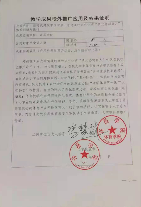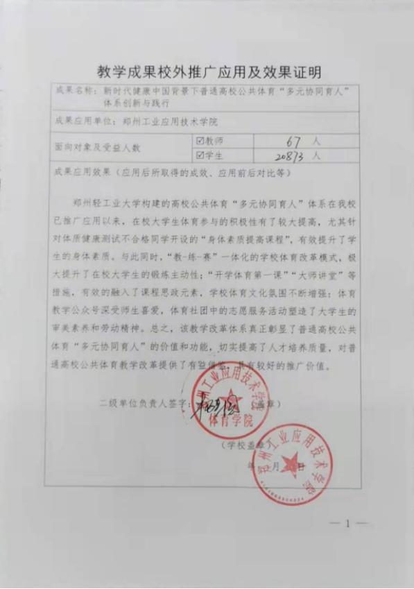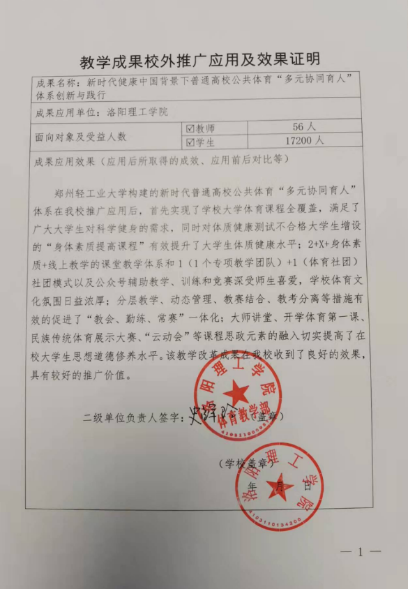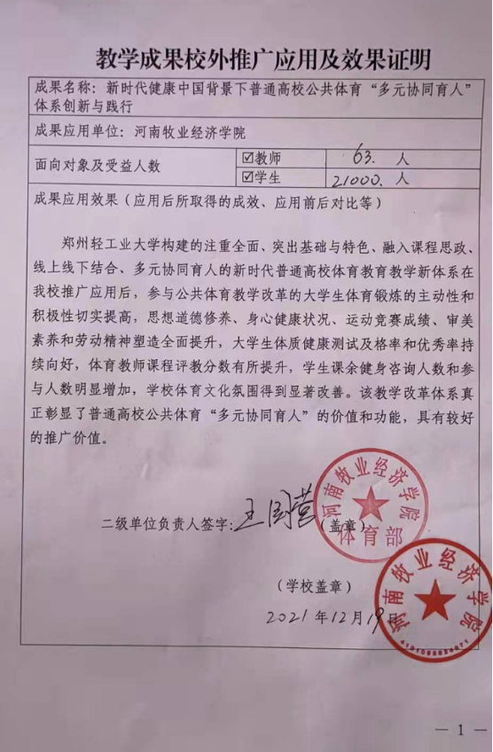 河南高等教育教学改革研究与实践项目成果展示十一:成果应用证明
