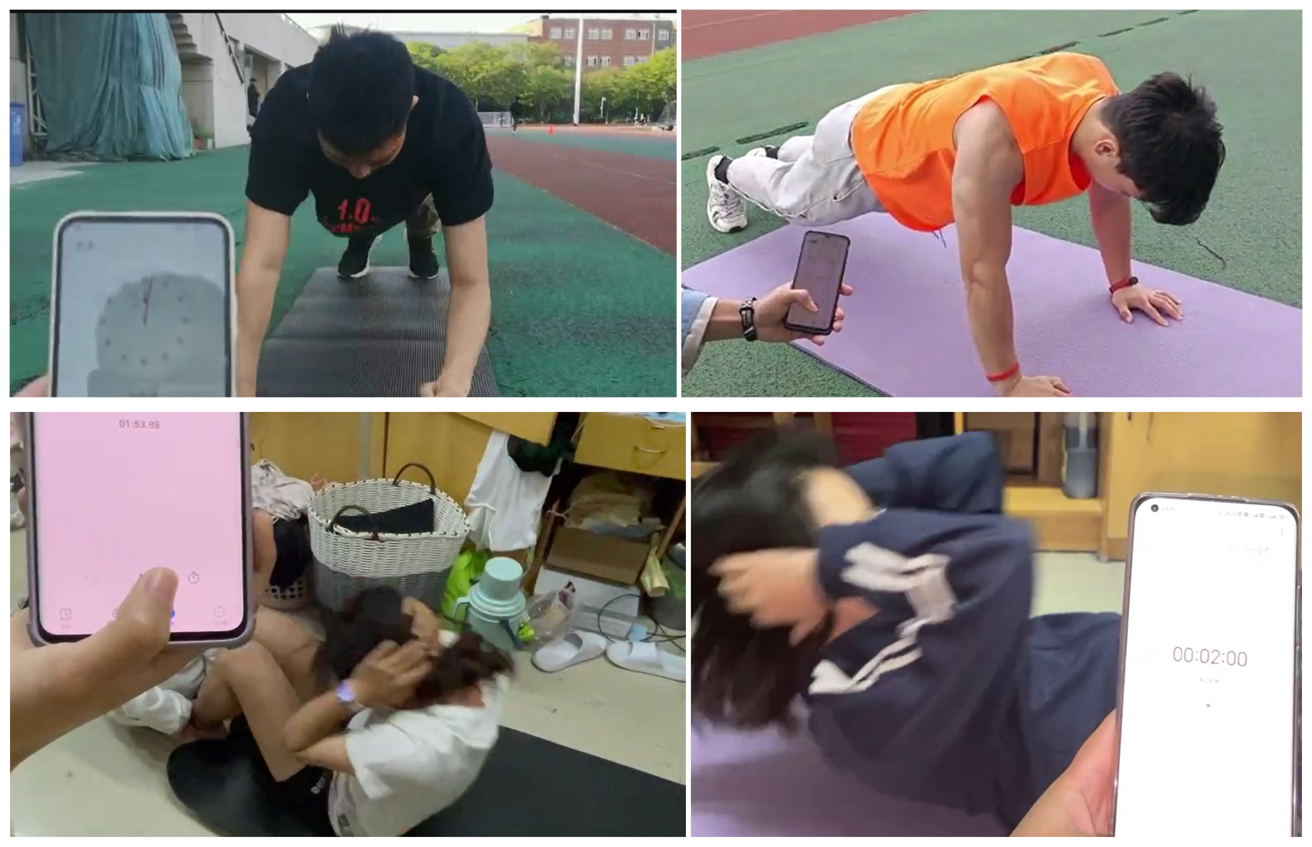 本次比赛由校团委、校体委主办,ng28娱乐官网 团委、校学生会承办,两校区各ng娱乐 共计160名同学参加了此次比赛。本次比赛分为男生两分钟手肘交替,女生两分钟仰卧起坐两个项目。开赛以来,同学们积极踊跃报名参赛。本次体能挑战赛采取视频评审方式进行,同学们打卡拍摄视频,以规定时间内完成标准完整动作的次数进行排名。比赛期间,同学们按照活动要求参与打卡、规范录制视频,为赢得比赛而拼尽全力,努力做到最好最强,充分展现轻大学子的活力与激情。