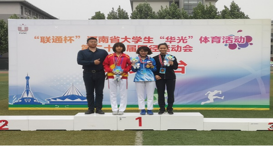 田径队在河南省大学生第二十一届田径运动会上,获得女子本科甲组200米第四名;女子本科甲组100米第三名;女子本科甲组4*100米接力第三名;女子本科甲组3000米第一名;女子本科甲组5000米第一名;女子本科甲组4*400米接力第五名;男子乙组100米栏第三名;男子本科甲组5000米第六名;男子本科甲组4*400米接力第六名。在第20届中国大学生田径锦标赛中获得,女子甲组1500米第五名。