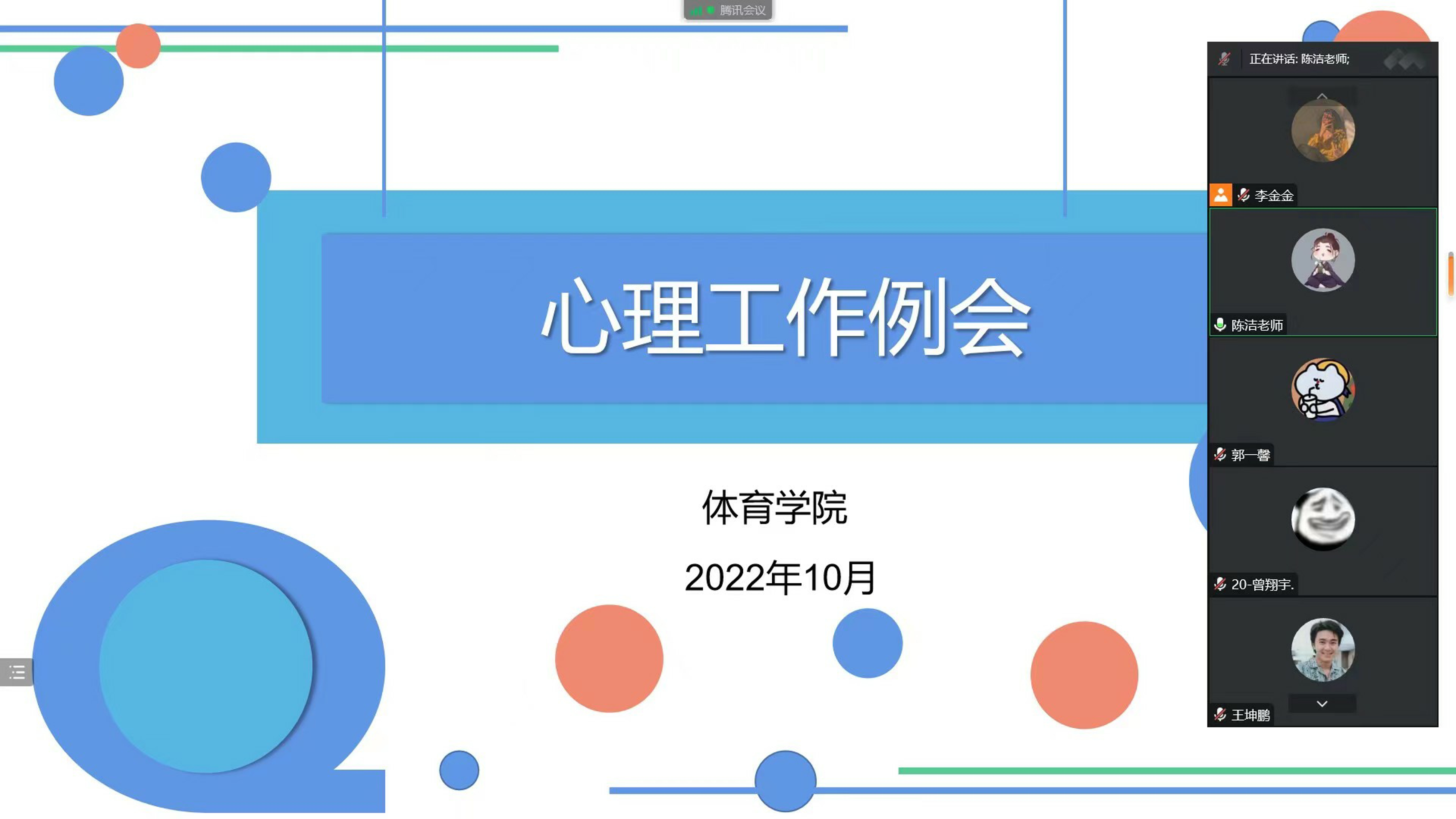 为提高学生的心理健康水平,帮助学生培养良好的心理素质,10月16日,ng28娱乐官网 通过腾讯会议线上召开心理健康教育工作会议。ng娱乐 心理部成员及各班心理委员参加了本次会议,会议由心理健康专职辅导员陈洁老师主持。