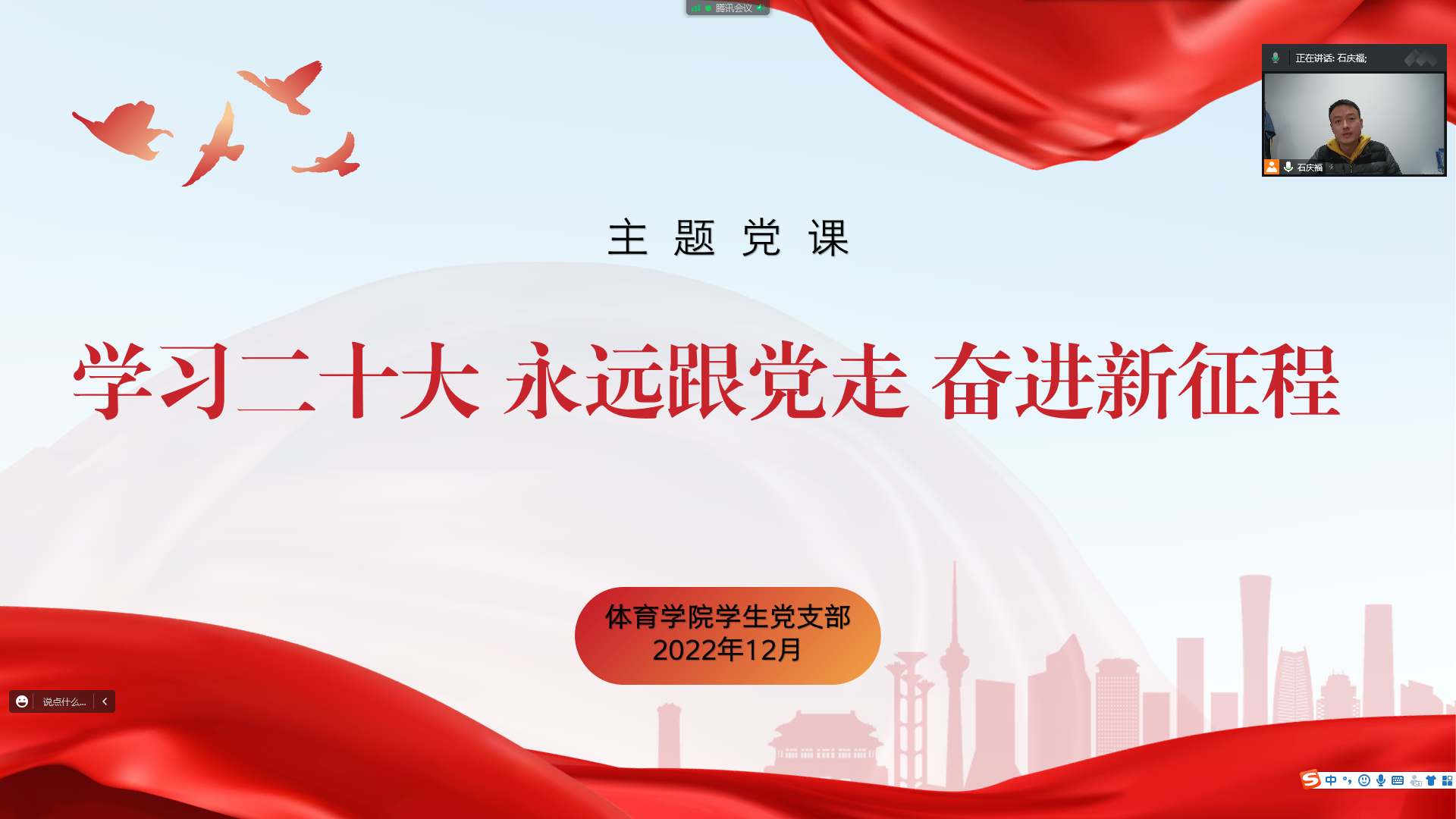为学习宣传贯彻党的二十大精神,12月1日晚上,ng28娱乐官网 学生党支部采取线上形式开展了“学习党的二十大,永远跟党走,奋进新征程”主题党课活动。本次党课由ng28娱乐官网 学生党支部书记石庆福主讲,ng28娱乐官网 学生党支部全体党员和入党积极分子参加了此次党课学习。