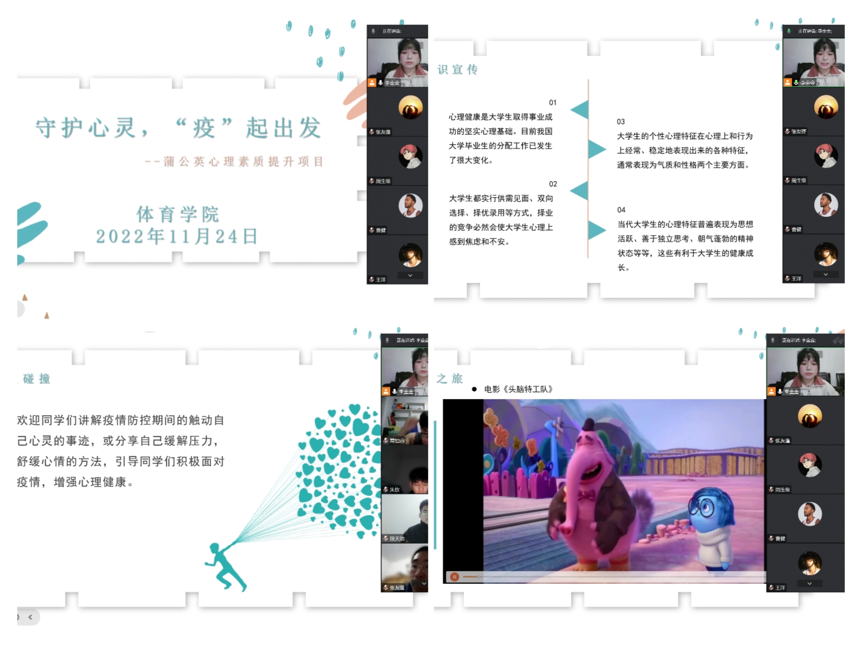 为缓解疫情防控下学生焦虑情绪,提高学生心理健康知识水平,丰富拓展心理健康教育内容,11月24日,ng28娱乐官网 线上开展“守护心灵,‘疫’起出发”蒲公英心理素质提升项目活动。