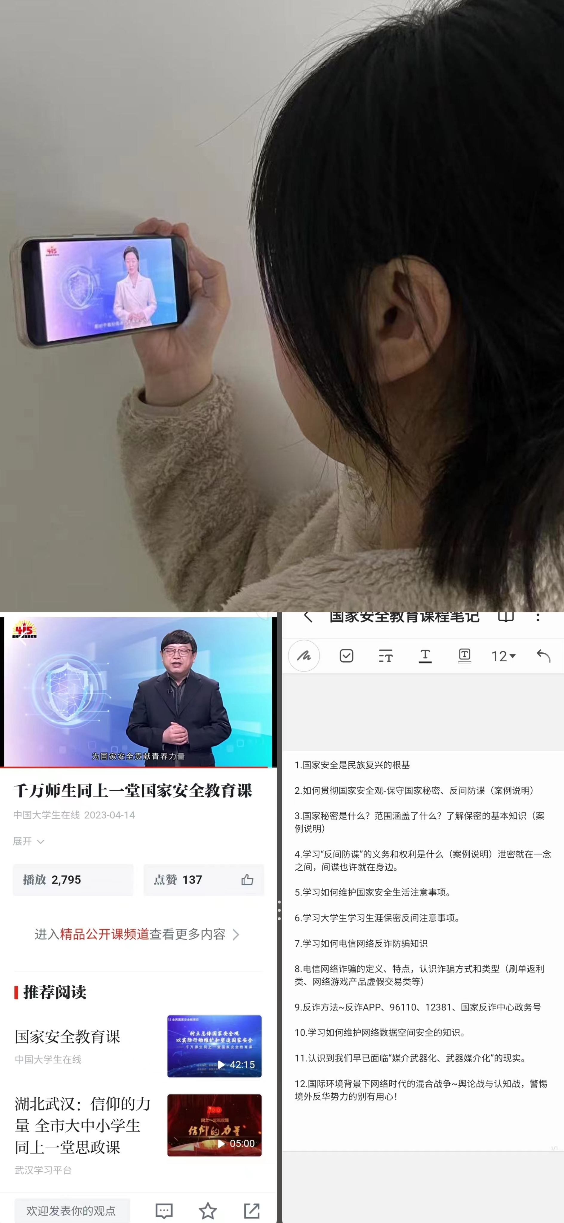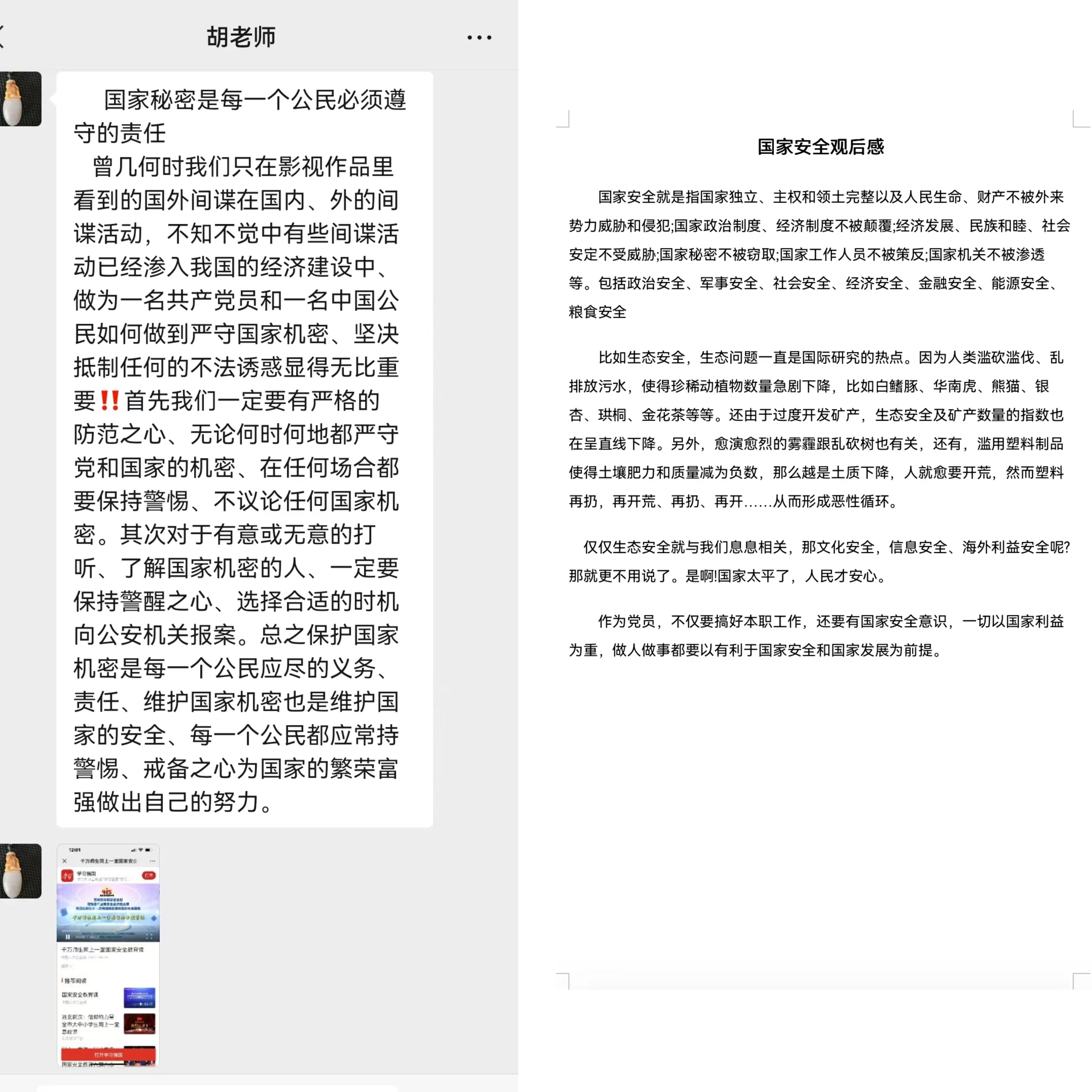 支部号召教师利用业余时间进行“国家安全”相关的理论知识学习,随后又组织全体党员教师学习观看了“千万师生同上一堂国家安全教育课”,进一步明确了维护国家安全的职责、义务和权利,树立起自觉维护国家安全的思想。通过此次主题党日活动,大家纷纷表示,要认真学习贯彻落实习近平总书记关于国家安全工作的重要指示批示精神,全面贯彻总体国家安全观,立足岗位职责,自觉增强国家安全意识,切实承担起党员维护国家安全的责任。(通讯员:闫荣)