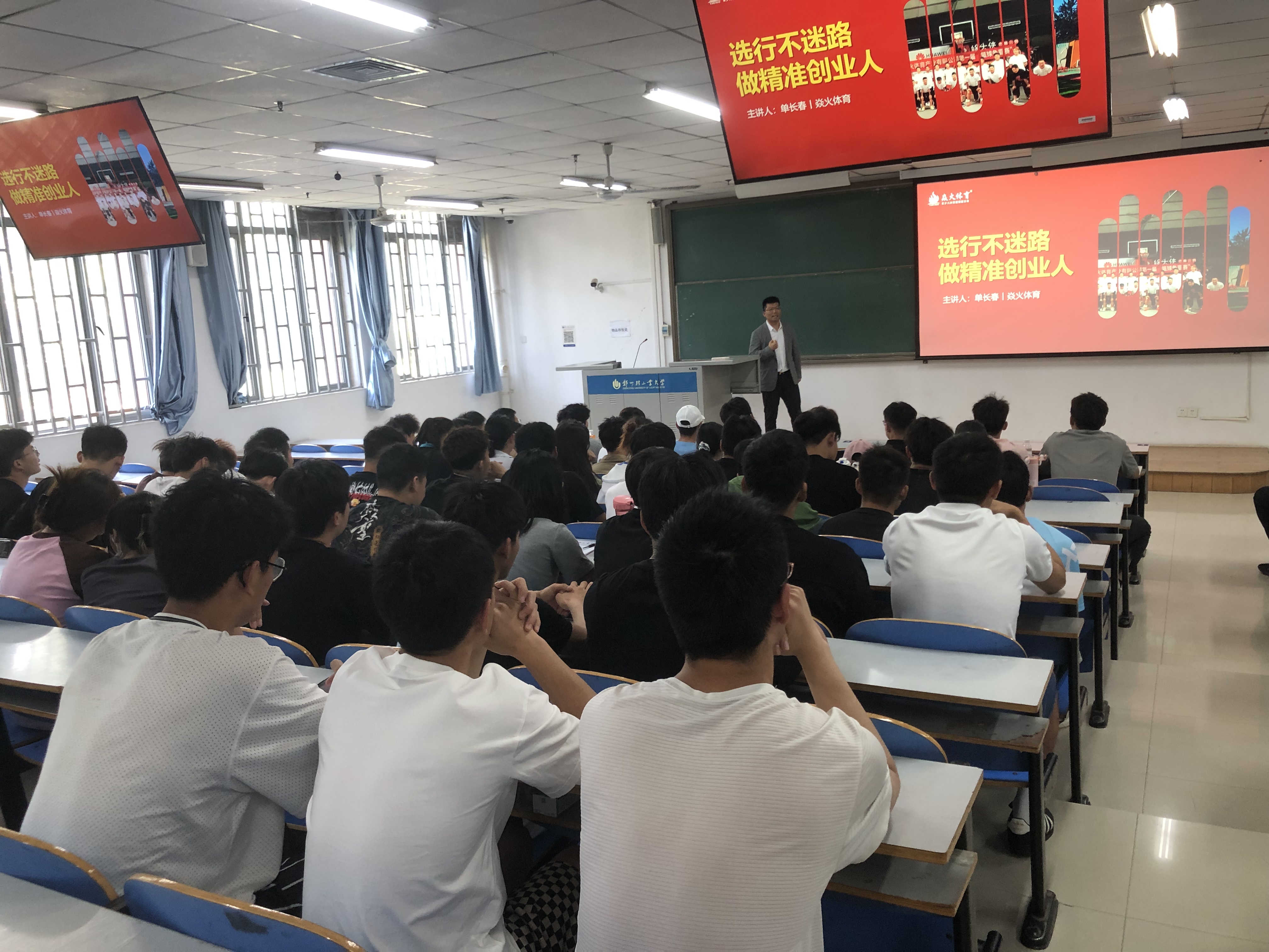 为了帮助同学们进一步了解体育行业发展现状,提升学生创新创业意识和能力,5月9日上午,ng28娱乐官网 在科学校区三教楼102举办了就业创业大讲堂活动。此次活动,特邀我校ng28娱乐官网 校友、河南焱火体育产业有限公司创始人单长春主讲,ng28娱乐官网 2021级和2022级学生参加了此次活动。