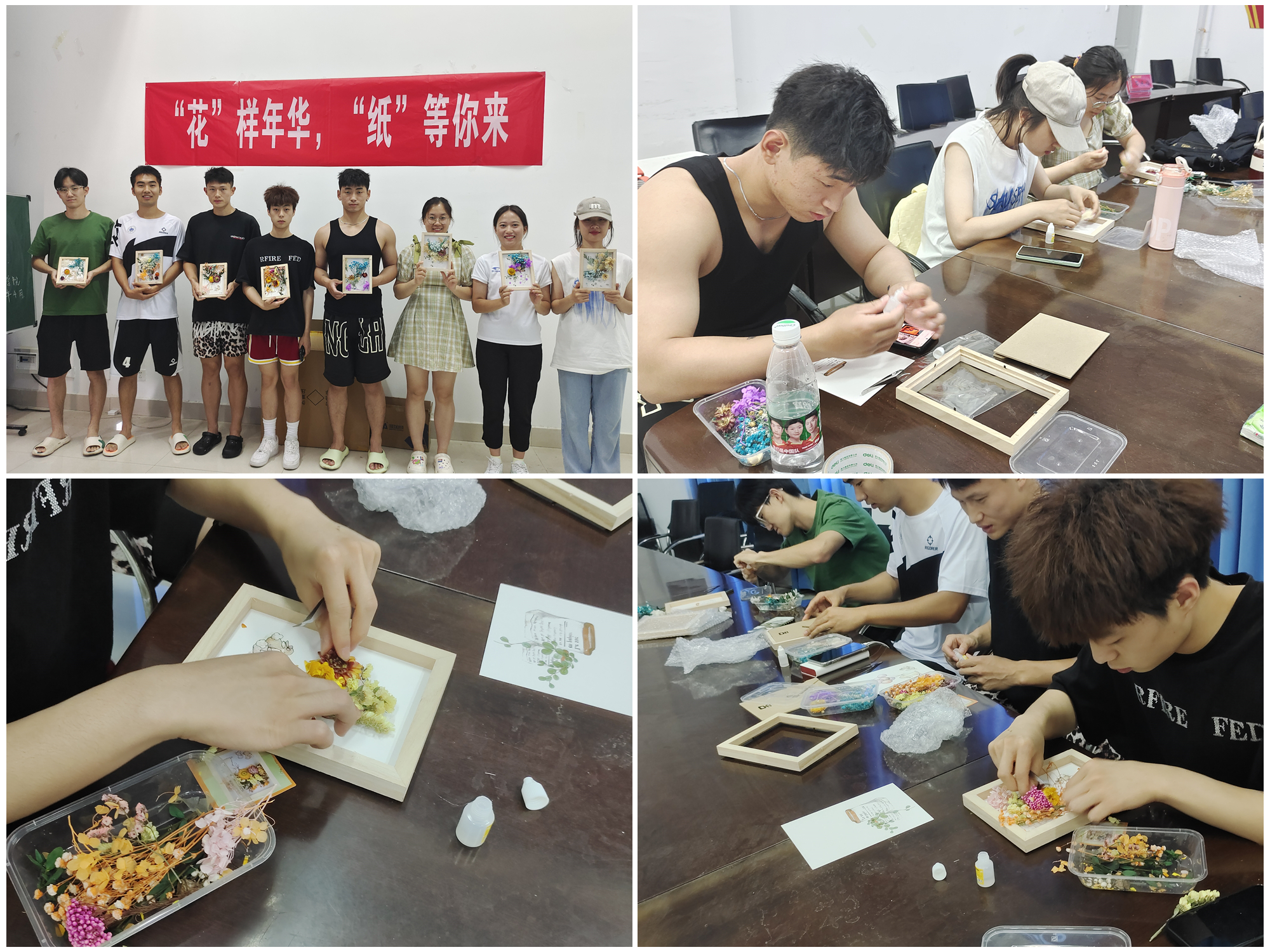 活动伊始,活动负责人向同学们讲解心理健康知识,并通过“你画我猜”、“一二三,看这边”等多个趣味小游戏的方式烘托活动氛围,引起同学们对心理健康活动参与的兴趣。接着,负责人向同学们发放花艺制作品,向同学们介绍了花艺的各种材料及制作流程。随后,同学们全神贯注地进行着自己的创作,还有部分同学以小组的形式进行团队制作。最后,负责人组织大家进行作品展示、合影留念,活动现场气氛热烈。