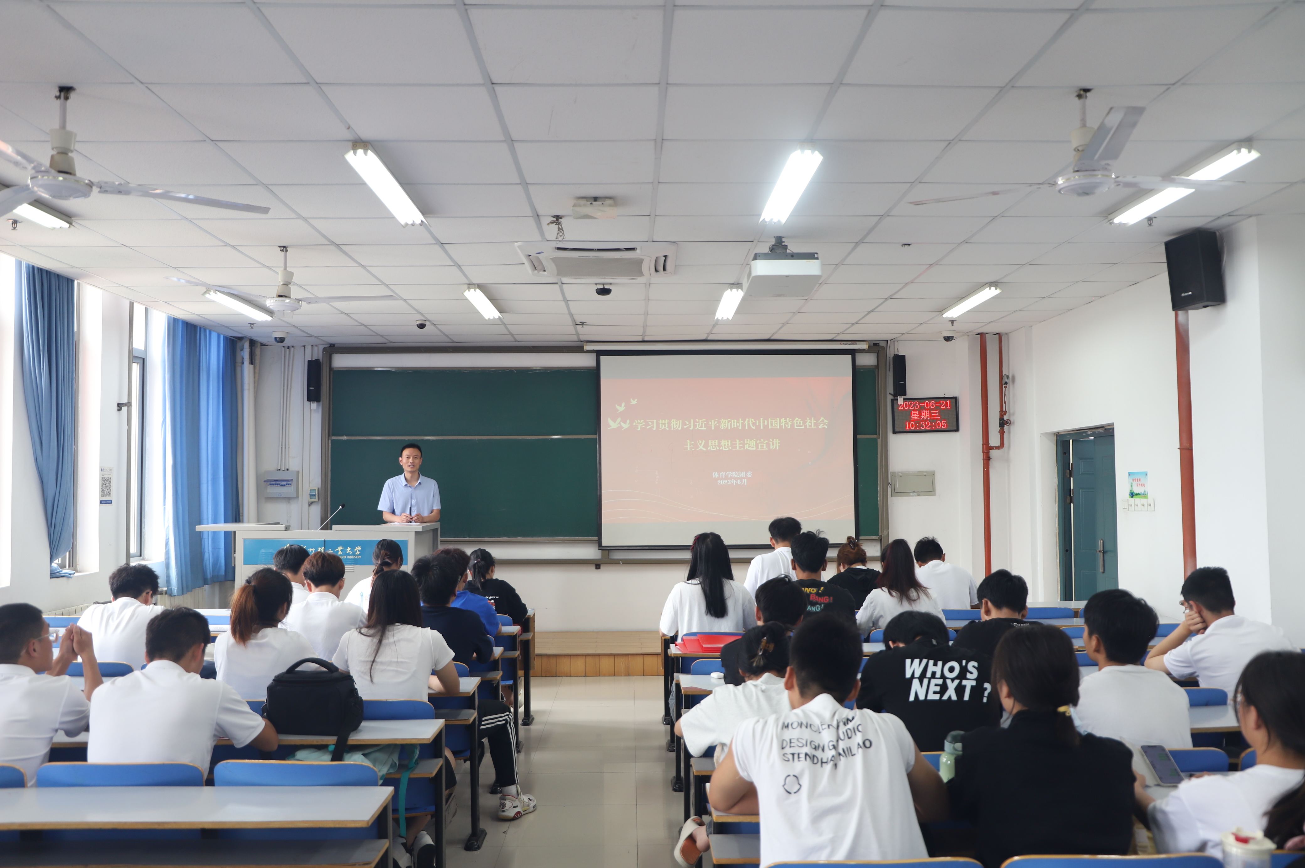 为深入学习贯彻习近平新时代中国特色社会主义思想,引领团员青年高举团旗跟党走,6月21日上午,体育ng娱乐 在科学校区二教楼608开展了学习贯彻习近平新时代中国特色社会主义思想主题宣讲活动。本次宣讲由校青年讲师团成员、ng28娱乐官网 团委书记石庆福主讲,ng28娱乐官网 2021级和2022级全体青年团员参加了此次活动。