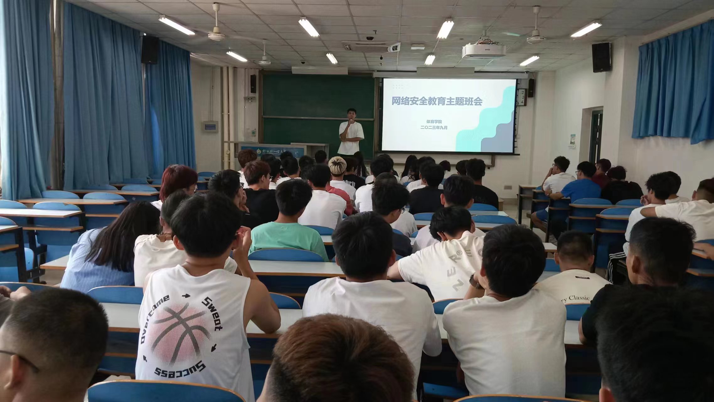 会上,辅导员首先带领同学们观看了国家网络安全宣传片,宣传片主要向大家介绍了常见网络威胁、危害网络安全的行为等内容。接着,辅导员通过案例分析、互动交流等形式,宣讲网络安全法律、科普网络安全等知识,引导同学们在网络信息碎片化、多样化的今天,注意甄别网络信息,学会独立思考和理性判断。最后,辅导员要求同学们依法遵守网络规章制度,从身边小事做起,减少信息外流,吸收网络文化正能量,认真学习网络安全知识,齐心协力营造风清气正的网络氛围。
