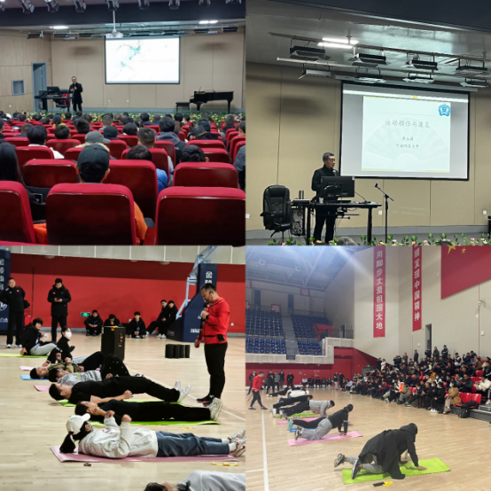 培训首日,河南省体育科技中心副主任唐洪渊副研究员、河南师范大学ng28娱乐官网 副院长李玉周教授分别从学生体能训练与运动防护、学生运动损伤预防与康复为教练员在理论方面作了详细地介绍和讲解。韩春远博士在篮球馆进行了核心力量训练的实践培训,他邀请十余名学员参与训练,从自身感受出发,为现场百余名体能训练教练员上了一堂由易到难的核心训练课程。