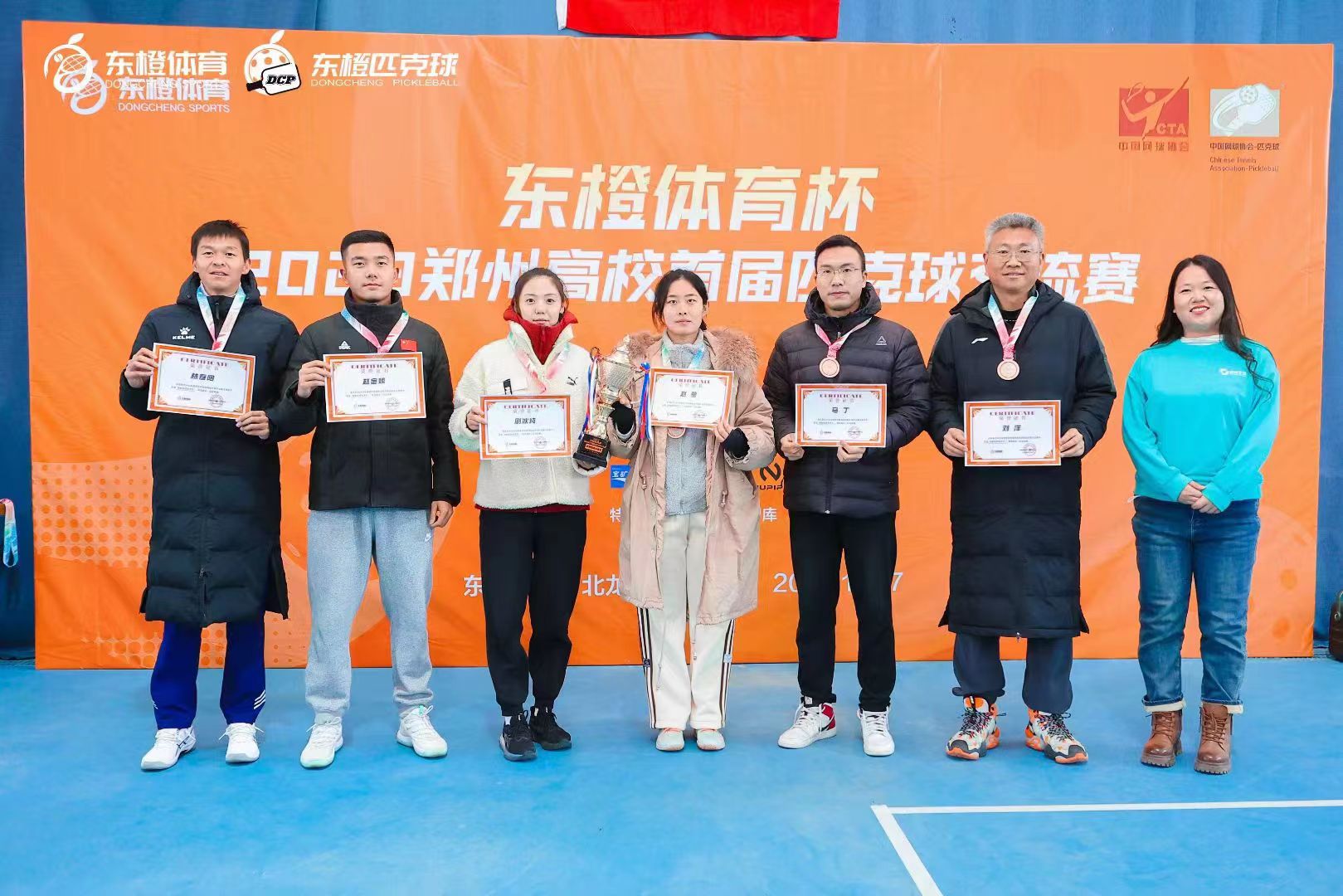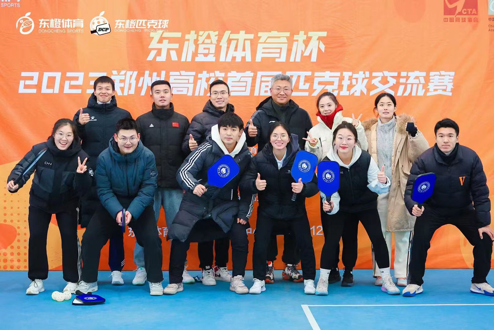 12月17日,由中国网球协会主办的“2023郑州高校首届匹克球交流赛”在北龙湖网球中心拉开序幕。比赛分为学生、教师组团体赛,共有来自郑州市8所高校的112余名师生运动员参加了本次比赛,经过一天的激战,我校匹克球队获学生组团体亚军、教师组团体季军。