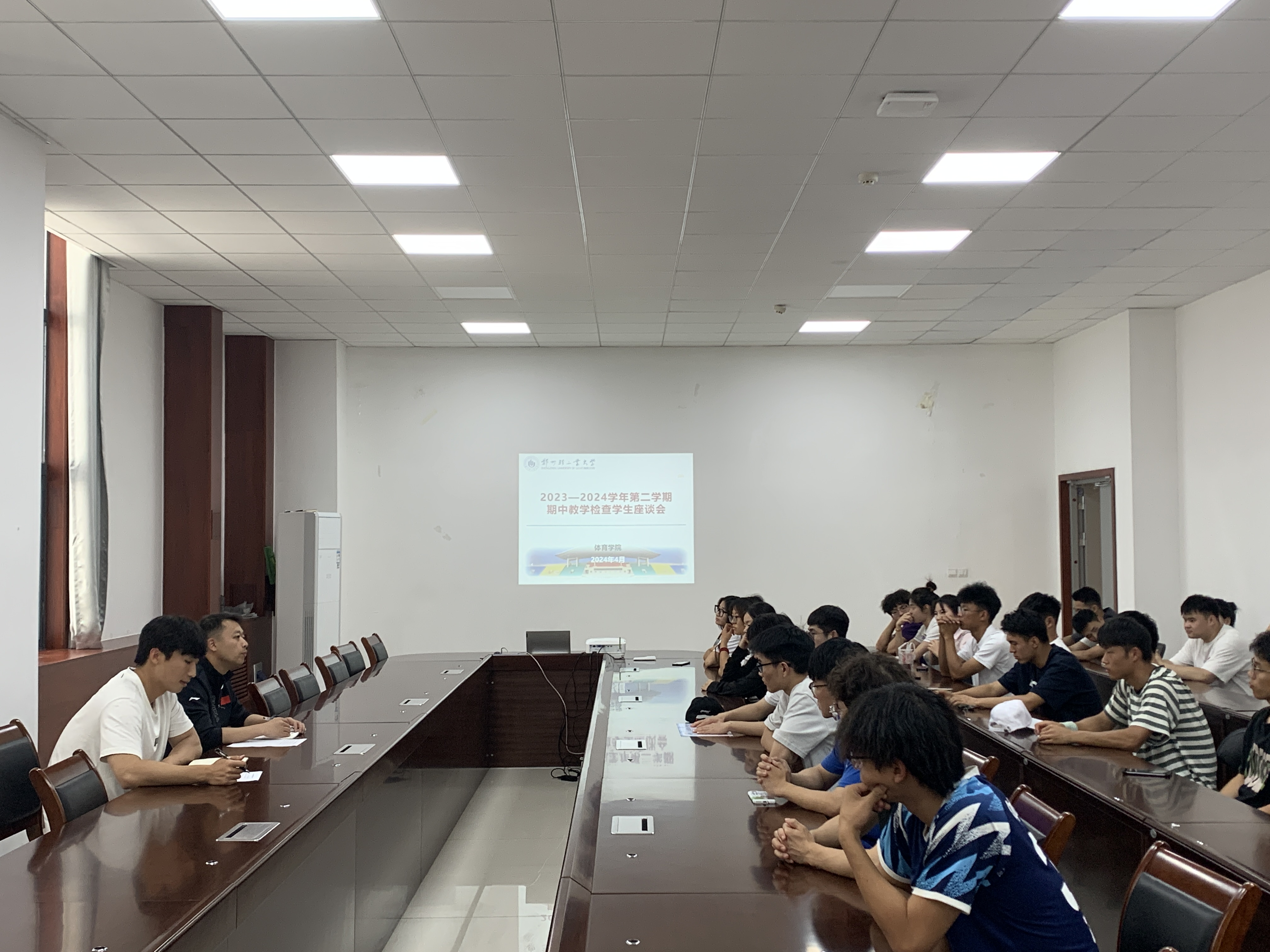 为进一步了解社会体育指导与管理专业本学期教学情况,适应新时代“体育强国”、“健康中国”战略和社会发展需求,促进专业学生德智体美劳全面发展,解决学生学习、生活方面等问题。社体系于4月25日在ng28娱乐官网 会议室召开了2023-2024学年第二学期期中教学检查学生座谈会。社体系教师代表以及各年级学生代表40余人参加了本次座谈会。会议由李鸿昕主持。