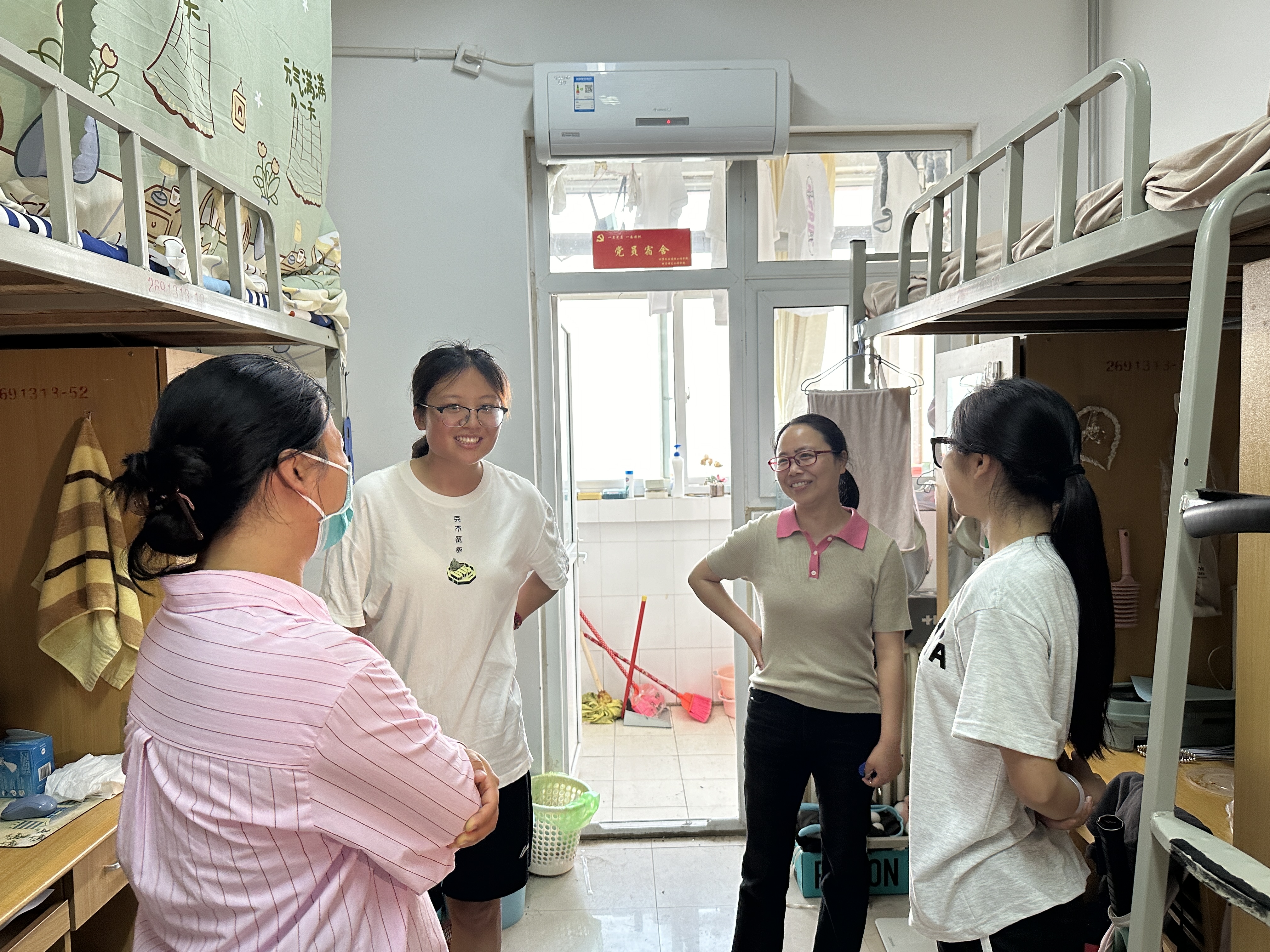 各宿舍对标学生处印发的《宿舍卫生创建标准及宿舍行为规范》《学生宿舍安全规定》等文件要求组织全体学生进行认真打扫和自查,辅导员进行逐一走访检查,对发现的安全隐患和卫生问题现场提出整改意见。走访过程中,辅导员与同学们进行亲切交流,了解学生思想动态,强调宿舍安全卫生的重要性,提醒大家保持室内通风和个人卫生,谨防传染病和流行性感冒。