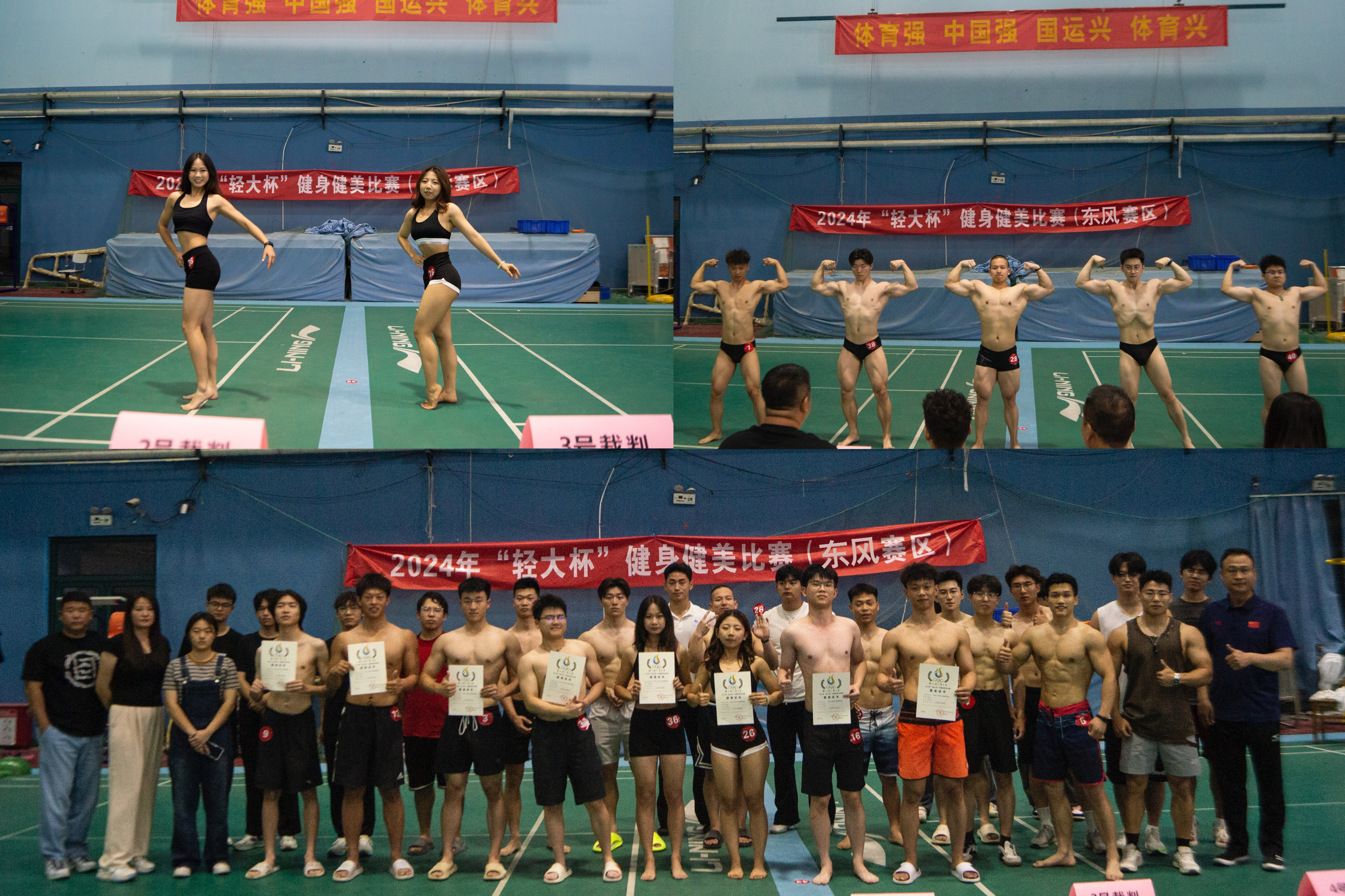 5月25日至26日,2024年“轻大杯”健身健美比赛分别在两校区成功举行。来自两校区共计60余名同学参赛。