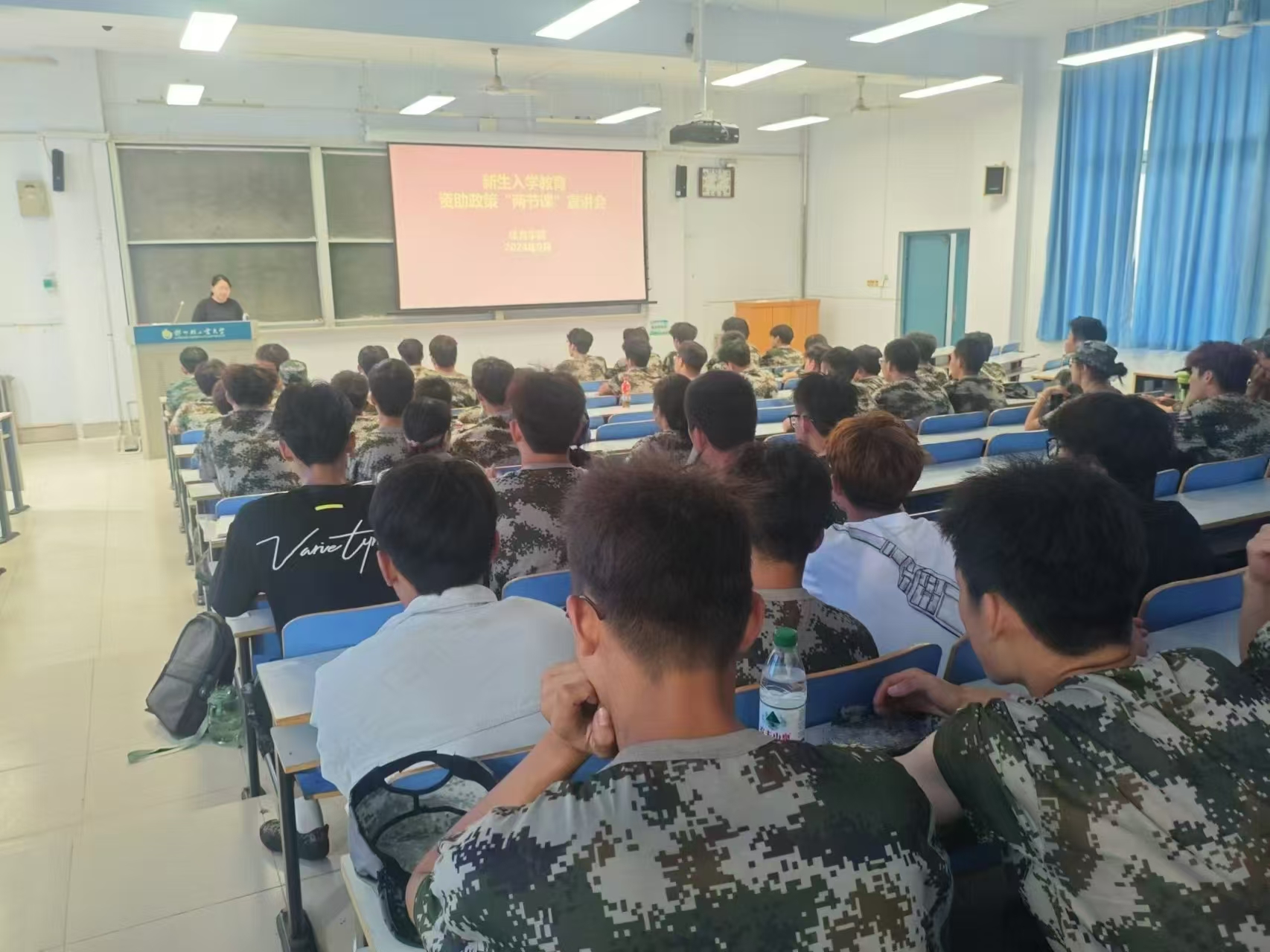 会上,陈洁老师通过案例细心全面地向新生介绍了国家和学校的各项资助政策,包含了国家励志奖学金、国家助学贷款、国家助学金、勤工助学、“绿色通道”等多项内容。同时,陈老师还对资助申请的具体流程、材料准备、发放时间等操作办法进行了说明,确保每位同学都能明确了解资助政策。结合具体的数据,深入浅出地讲解了政策的实施效果和社会影响,使学生都能明确自己的权益和申请路径。最后,学生们积极提问,通过互动答疑的方式,加深了对资助政策的理解。
