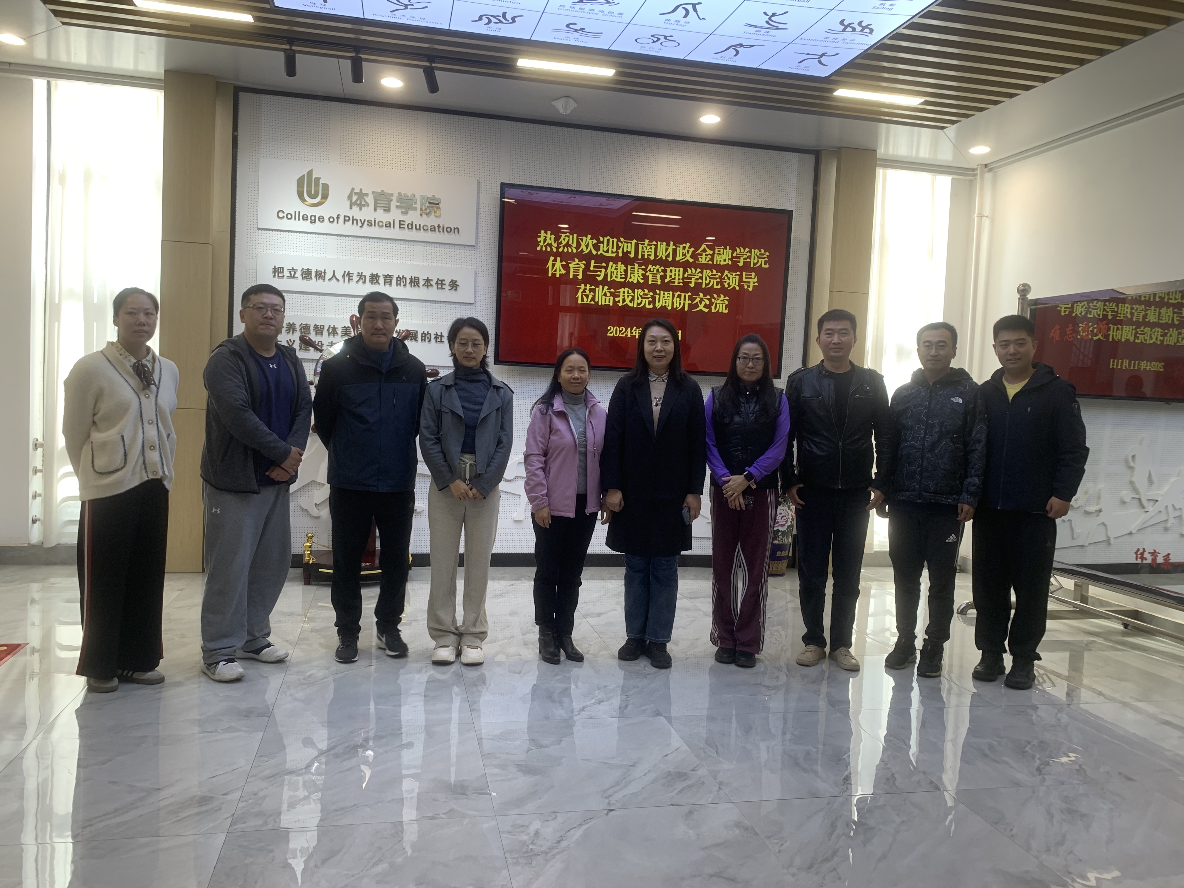 方慧对兄弟院校的到来表示热烈的欢迎。刘洋、常慧萍从办学规模、专业建设、师资队伍建设、人才引进等方面分别对各自ng娱乐 进行了详细介绍。双方围绕“课程设置方向、具体内容及新内容的师资分配、课程思政及教学基层组织的进展及申报经验、师资队伍的培训、课外锻炼及康复保健课的实施”等方面展开了充分的讨论与交流。最后,来访人员在方慧的带领下参观了篮球馆、体能馆、乒羽馆、网球馆、武术馆、智慧体质测试中心。