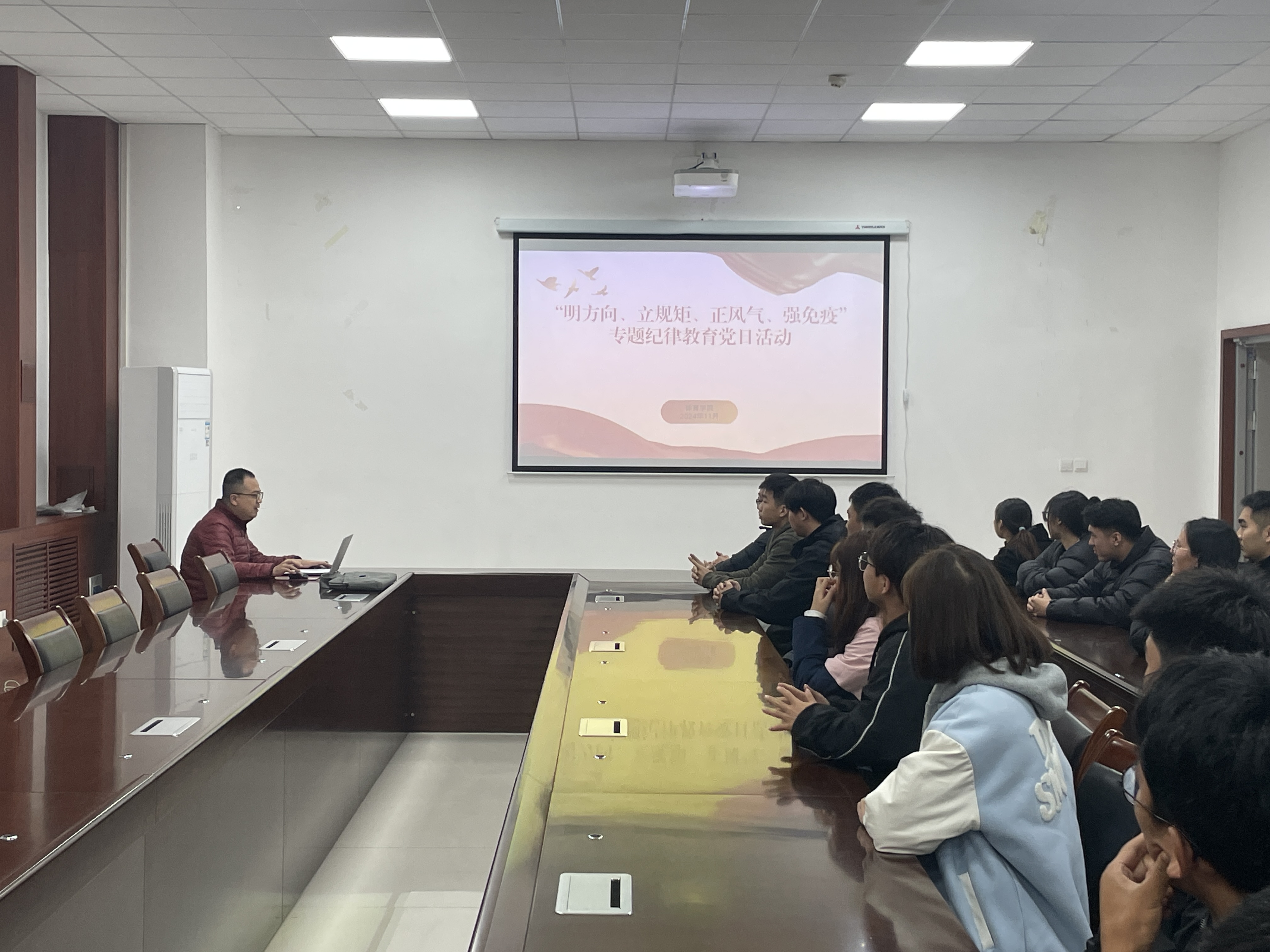 活动开始,张老师带领同学们集中观看了廉洁文化(高校篇)微视频。随后,围绕“明方向、立规矩、正风气、强免疫”主题进行了专题党课。他从党的纪律和规矩的内涵、重要性以及学生党员如何践行等方面进行深入解读。并结合生动案例,强调了纪律规矩在党员成长和校园建设中的重要作用,引导学生党员树立正确的世界观、人生观和价值观。互动环节,学生纷纷发言,分享了自己的学习心得和体会。大家表示,通过此次活动,对党的纪律和规矩有了更加深刻的认识和理解,将以此为契机,进一步加强自我约束和管理,不断提高自身的党性修养和道德水平。