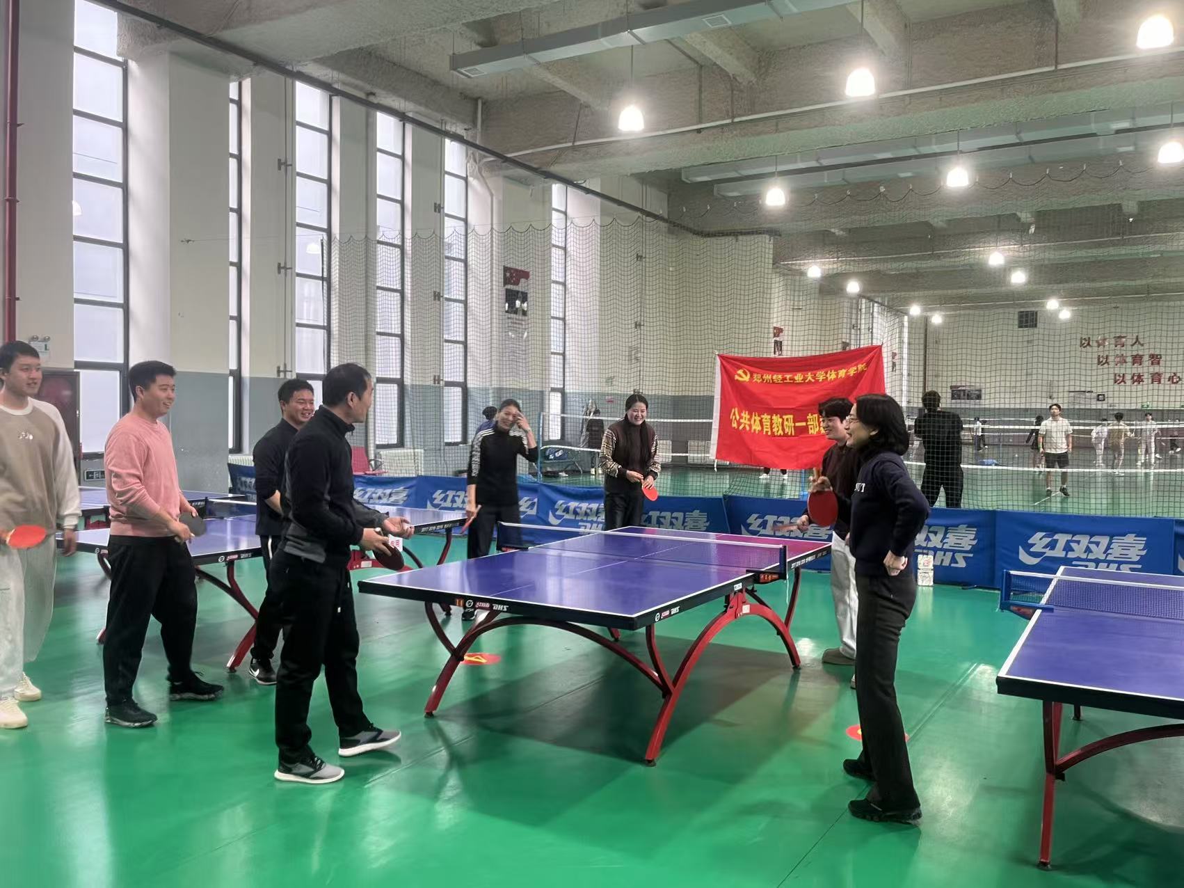 为纪念一二·九运动,弘扬爱国主义精神,12月5日,公共体育教研一部教工党支部在ng28娱乐官网 乒乓球馆举办了一场别开生面的乒乓球比赛。此次比赛旨在通过体育竞技的方式,让广大党员铭记历史,不忘使命,以实际行动践行一二·九运动的精神内核。此次活动支部党员全员参与。