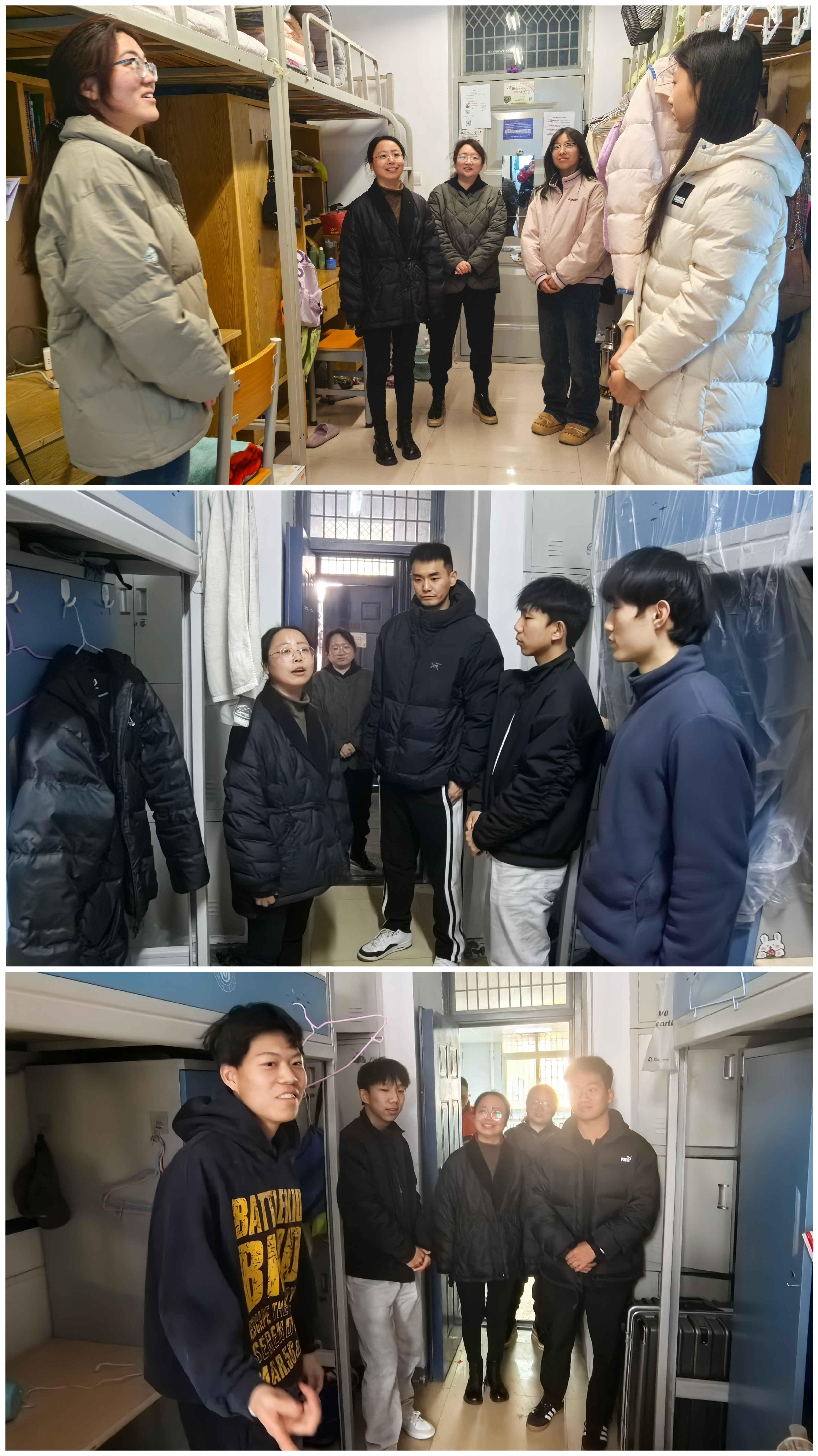 走访过程中,辅导员与学生亲切交谈,从住宿饮食、学习状态、职业生涯规划等多方面详细询问了学生返校后适应情况,提醒同学们养成良好的生活习惯,提前做好学期规划,保持寝室干净整洁,注意用电安全,警惕火灾发生,严格遵守学校的规章制度,共同营造整洁有序的住宿环境。交流中,老师们引导学生要坚定学习信念,尽快从假期状态转变为学习状态,以饱满的精神面貌迎接新学期的到来,争取新的进步。