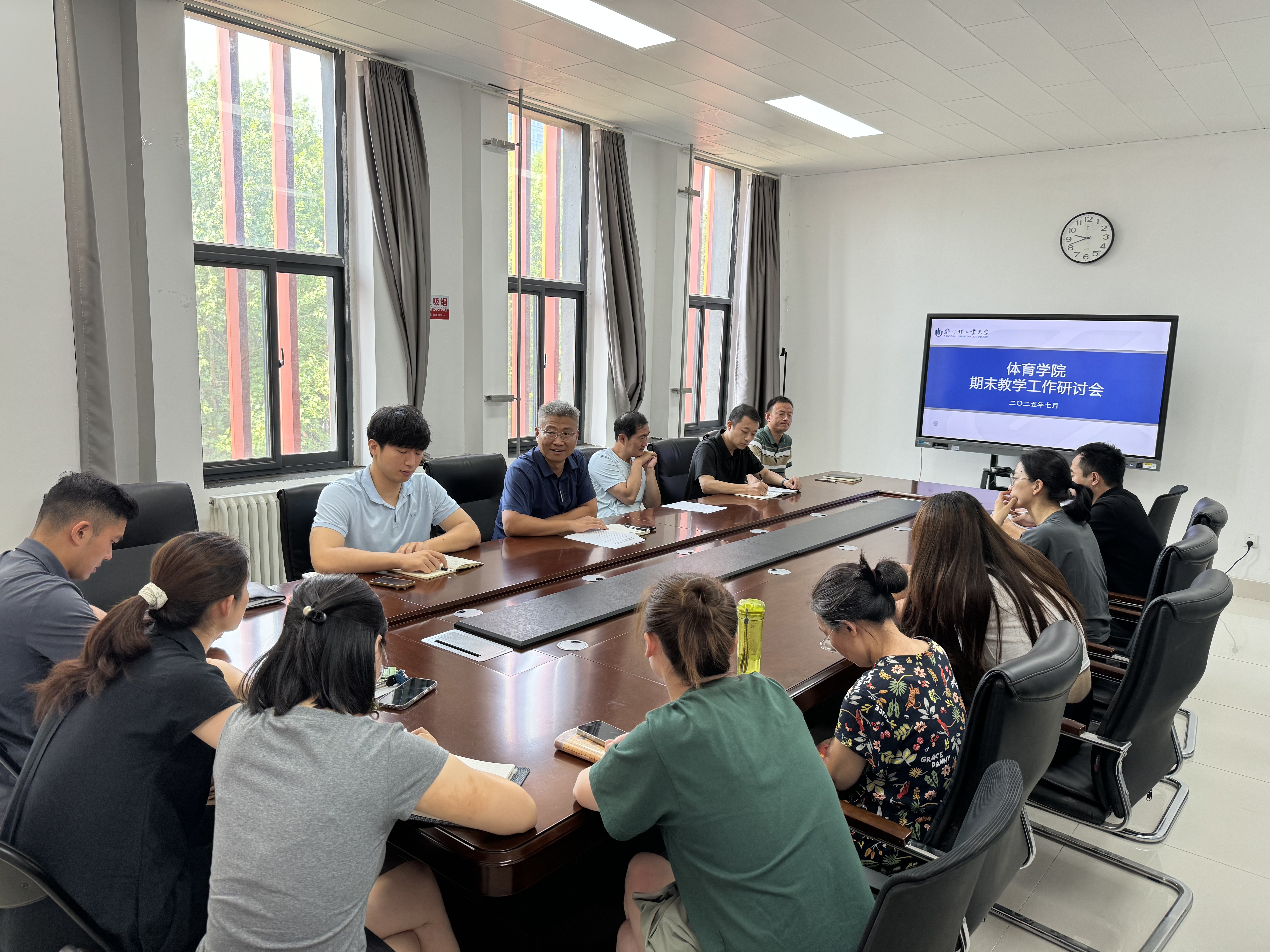 期末教学工作研讨会围绕学期核心教学工作展开深入探讨。会议系统回顾了本学期教学督导情况,就大学体育课程建设与教学改革、专业规划与建设、人才培养方案的完善定稿、实习实训与毕业设计(论文)管理、运动队训练与体育竞赛组织、学生体质健康测试工作以及教学管理文件修订等关键议题进行了充分交流与审议。与会教师针对教学实践中遇到的具体问题展开了热烈研讨,为下一阶段教学工作的精细化管理和内涵式发展凝聚了共识、明确了方向。