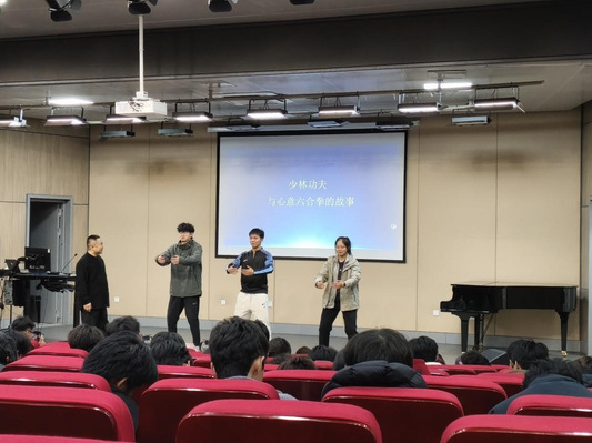 迟会长系统梳理了中国茶文化从药用、食用到品饮,直至升华为一种修心艺术与的发展历程,并用生动幽默的语言讲述了茶文化在推动炎黄文明国际化传播方面的重要作用。随后,他从武术的基本站桩与呼吸切入,揭示了茶艺与中华武学的共同智慧,示范指导学生练习八段锦中的几个基本动作,让大家切身体会身体中正、气息下沉的感觉。最后,他号召全体学生“以武修身、以茶养性”,在传承茶道和弘扬武术精神中坚定文化自信。