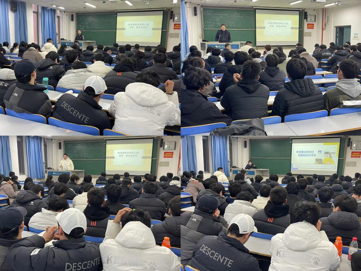 为帮助2023级社会体育指导与管理专业学生明晰职业规划,把握未来发展方向,增强考研与考公的信心与决心,3月17日,ng28娱乐官网 在二教楼708教室隆重召开了2023级学生考研考公动员大会。