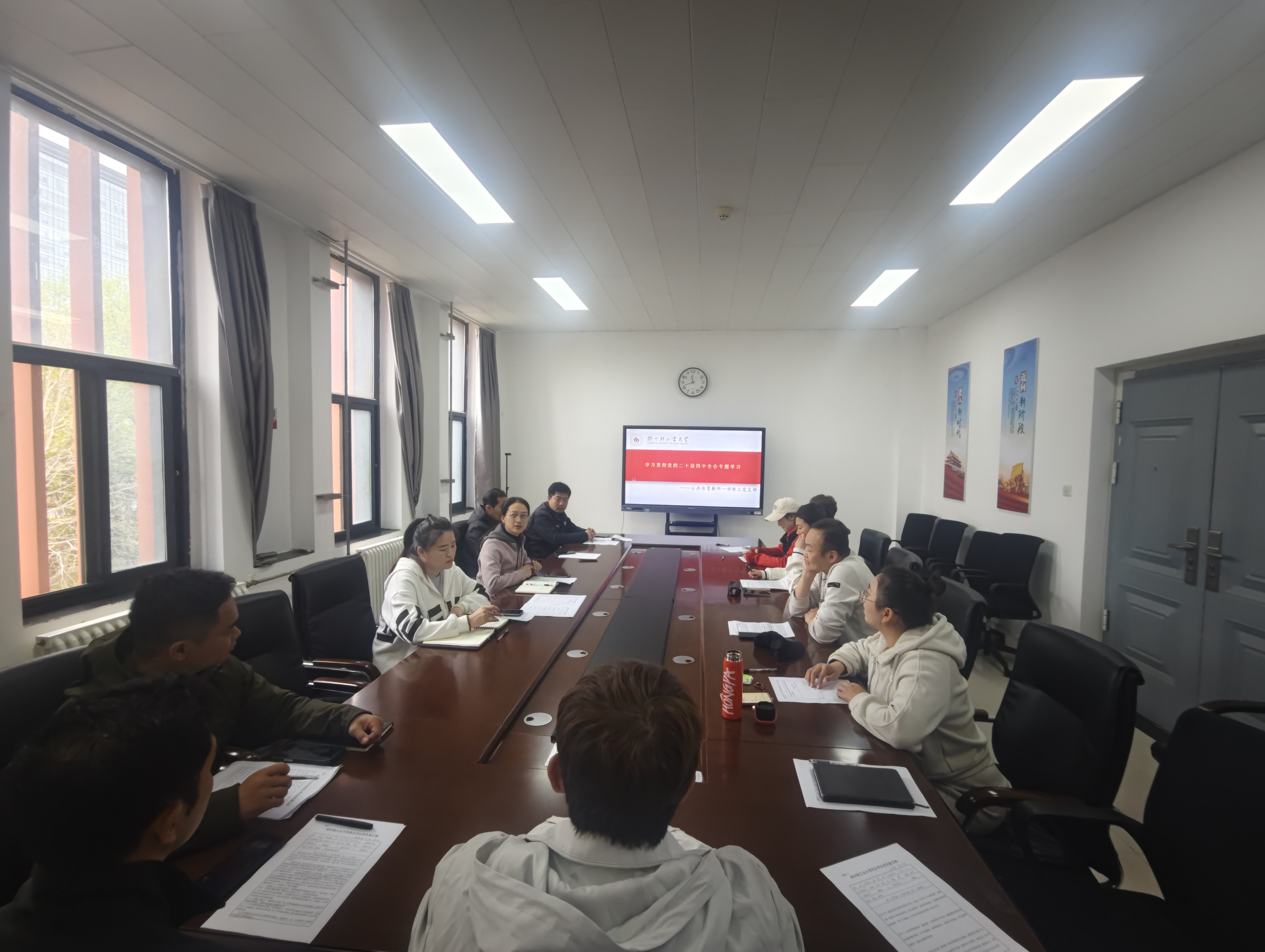 会议室召开学习贯彻党的二十届四中全会专题学习会,组织全体党员集中学习《“十五五”时期经济社会发展的指导思想、重大原则和根本保证》《“十五五”时期经济社会发展的重大战略任务》两门专题课程。会议由支部书记杨莹莹主持,支部全体党员参加。